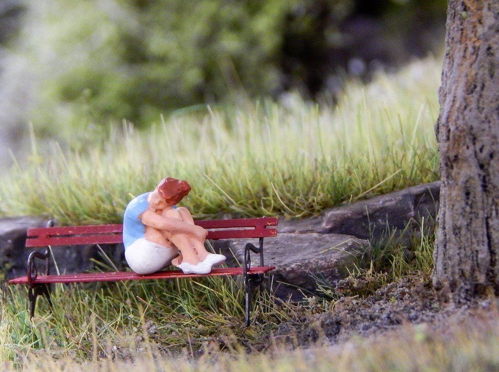 Die Büsche und Pflanzen werden mit feinem Streumaterial in verschiedenen Grüntönen dargestellt. Hierfür besprühe ich die langen Gräser mit Mattlack und beriesele diese mit dem Streu.