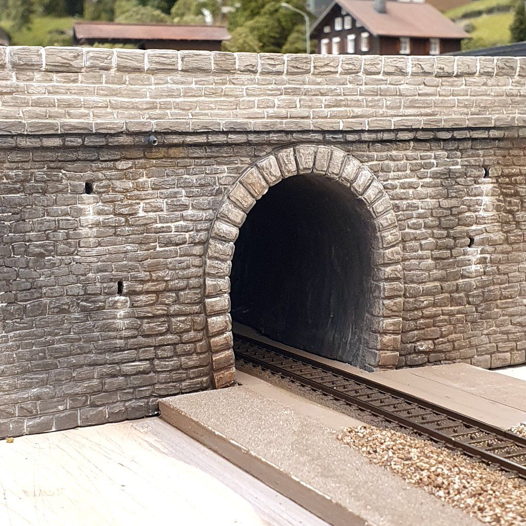Die Tunnelportale, Brücken und Mauern entstanden vorwiegend im Eigenbau nach Vorbildfotos.
