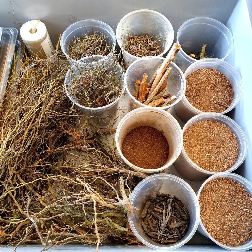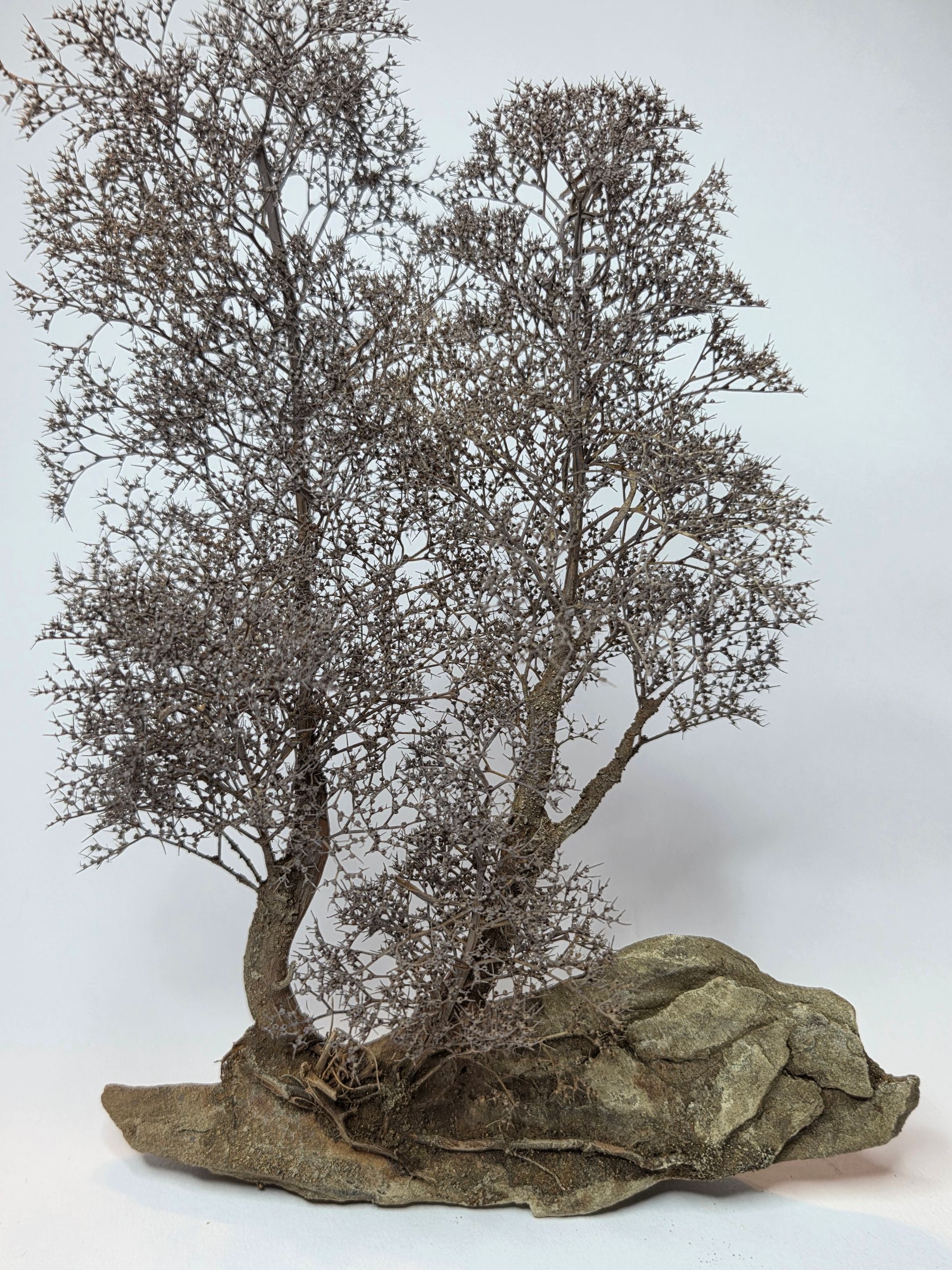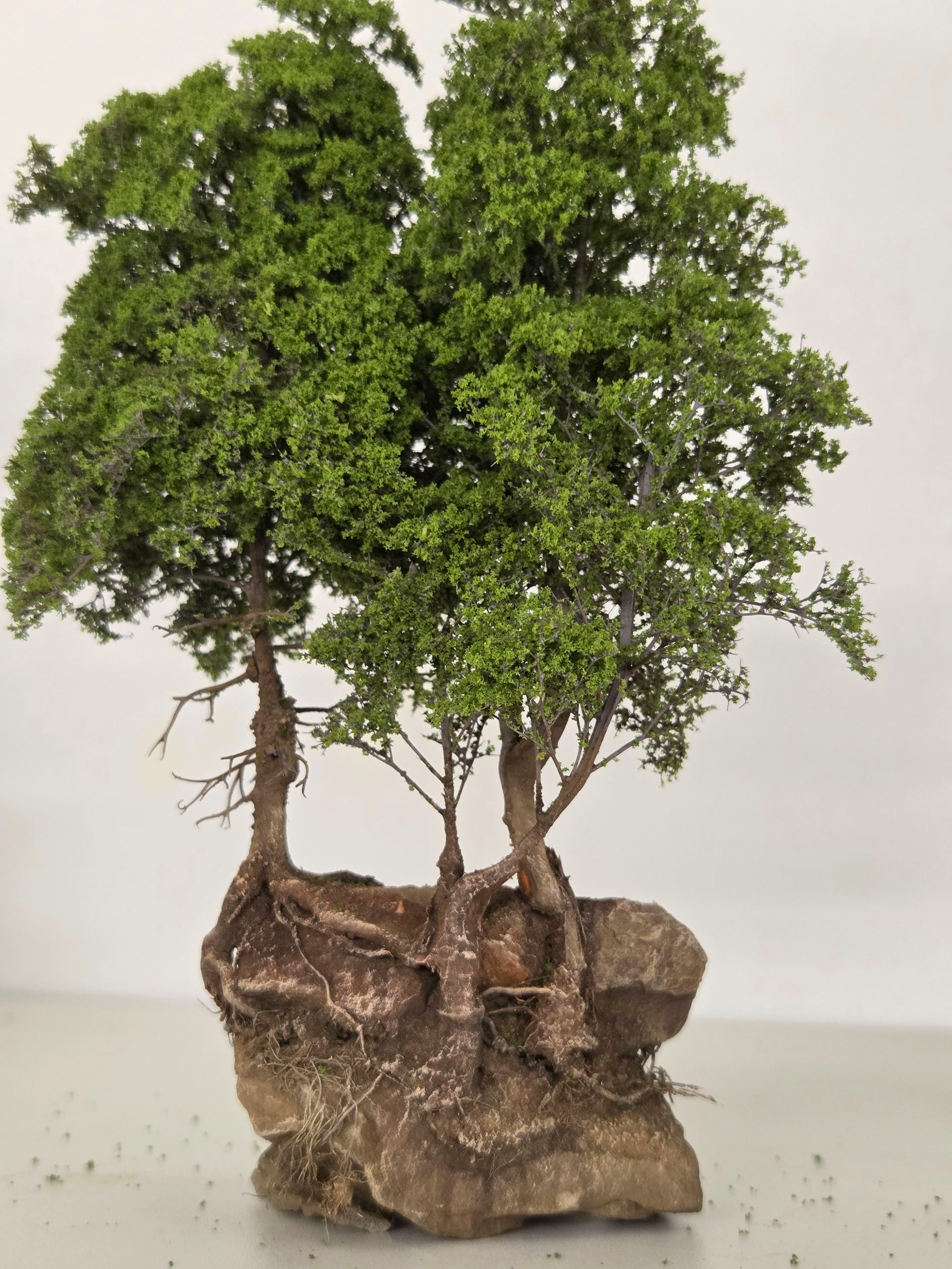 Für die Darstellung von knorrigen Bäumen, verwende ich feine Wurzeln von umgefallenen Bäumen, die ich auf meinen Wanderungen gesammelt habe.