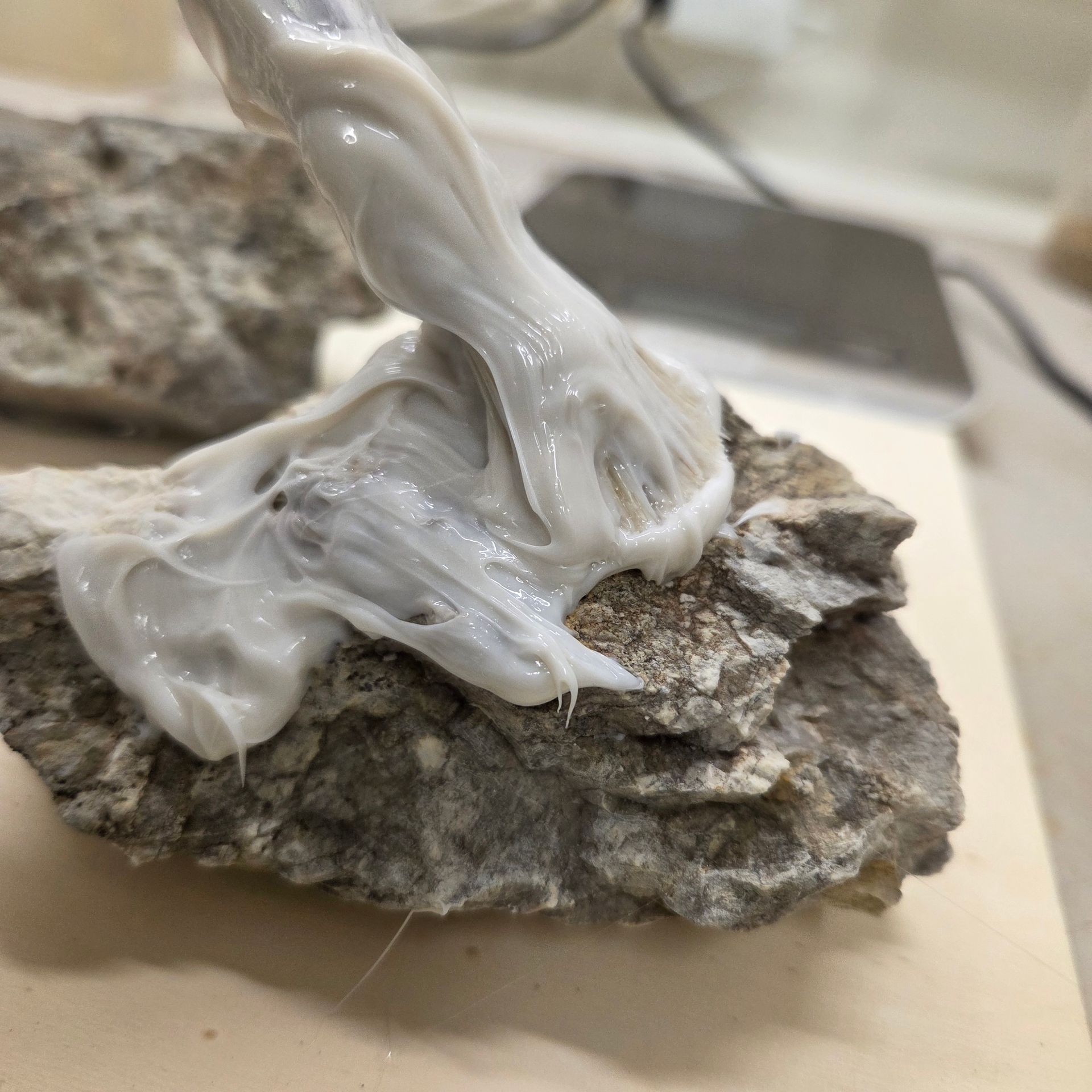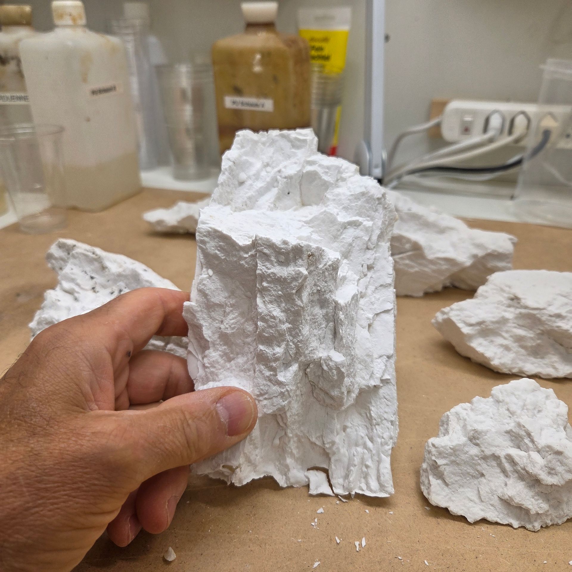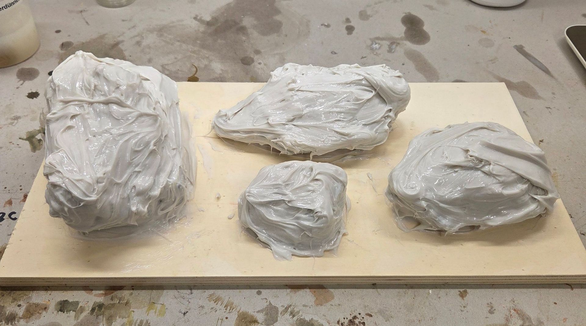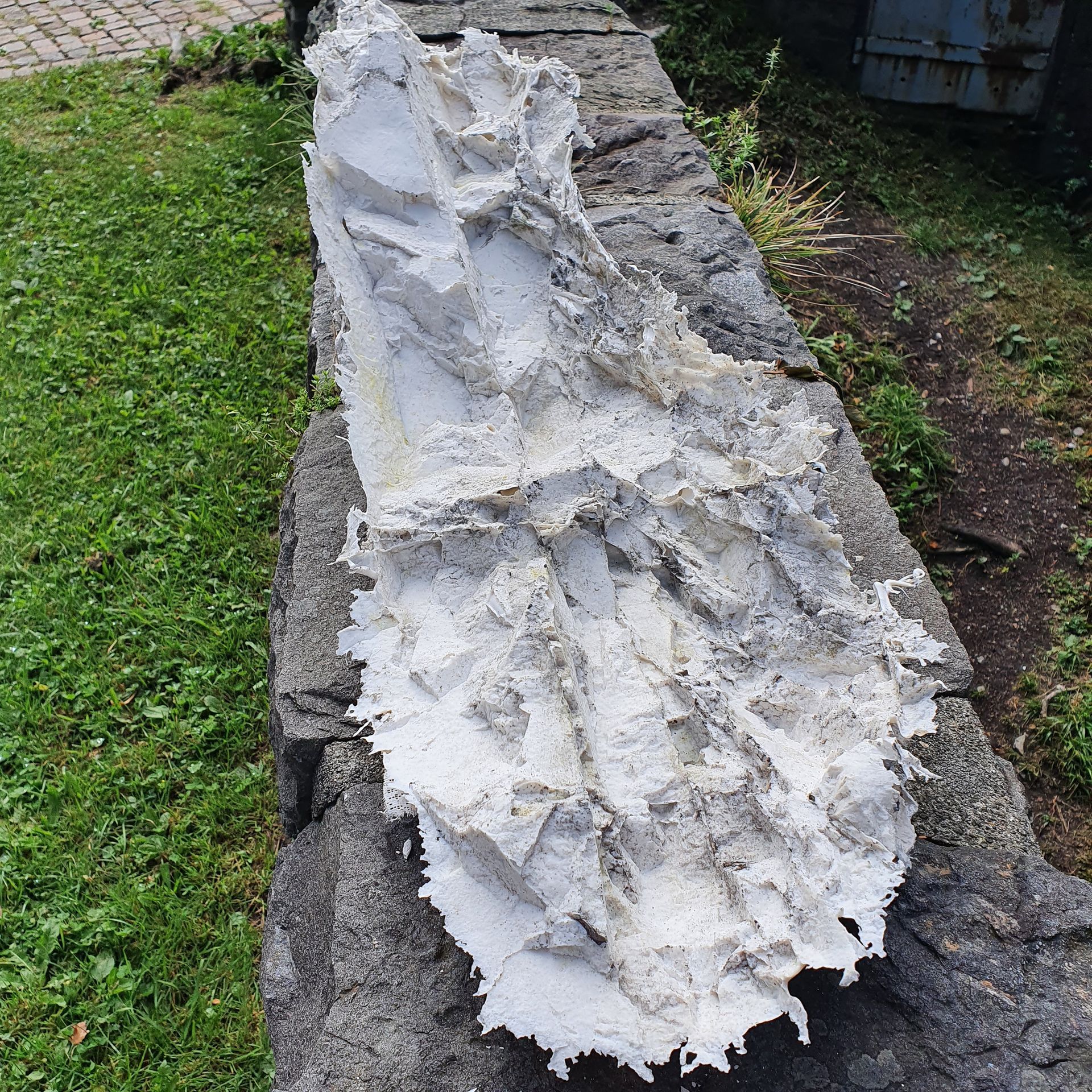 Nach der 30 minutigen Trocknung des Hartschaums, kann die Silikonhaut abgezogen werden und fertig ist der echt wirkende "Urirock".