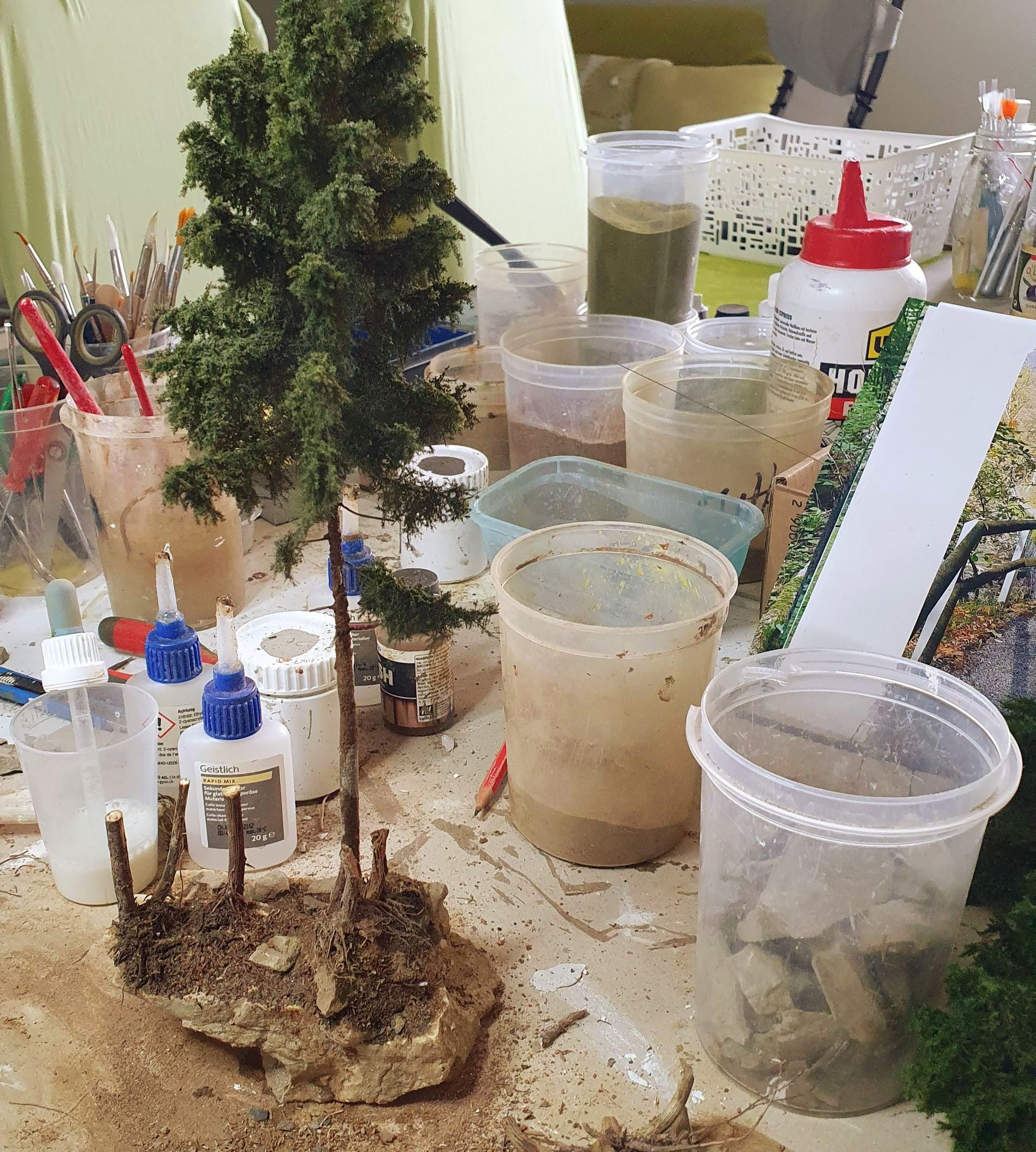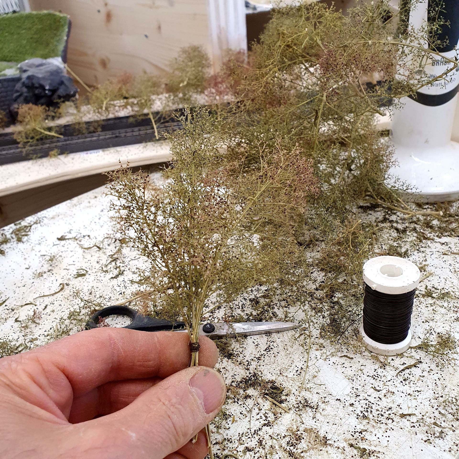 Alle anderen Bäume und Büsche entstanden vorwiegend aus selbst begrüntem Seemoos und Grasfasern.