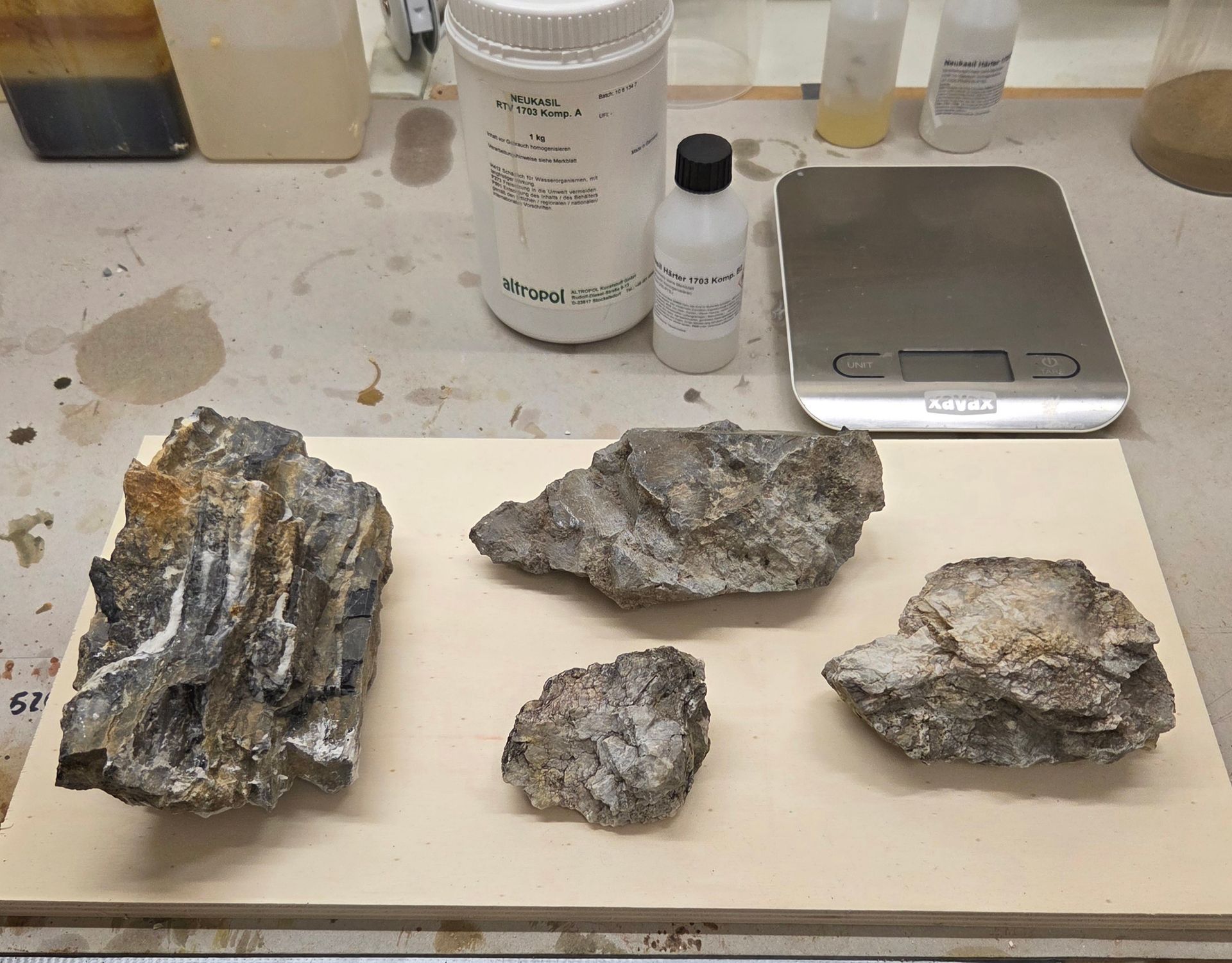 Für die Felsen auf meiner Gotthardanlage, habe ich von grösseren und kleineren Steinen vom Urner Boden und Klausenpass Höhe, , Formen aus Silikon hergestellt. Hier ein paar Bilder von vier gut strukturierten Steinen und die verschiedenen Arbeitsschritte, bis zur fertigen Kopie, der vier kleinen "Urirocks".