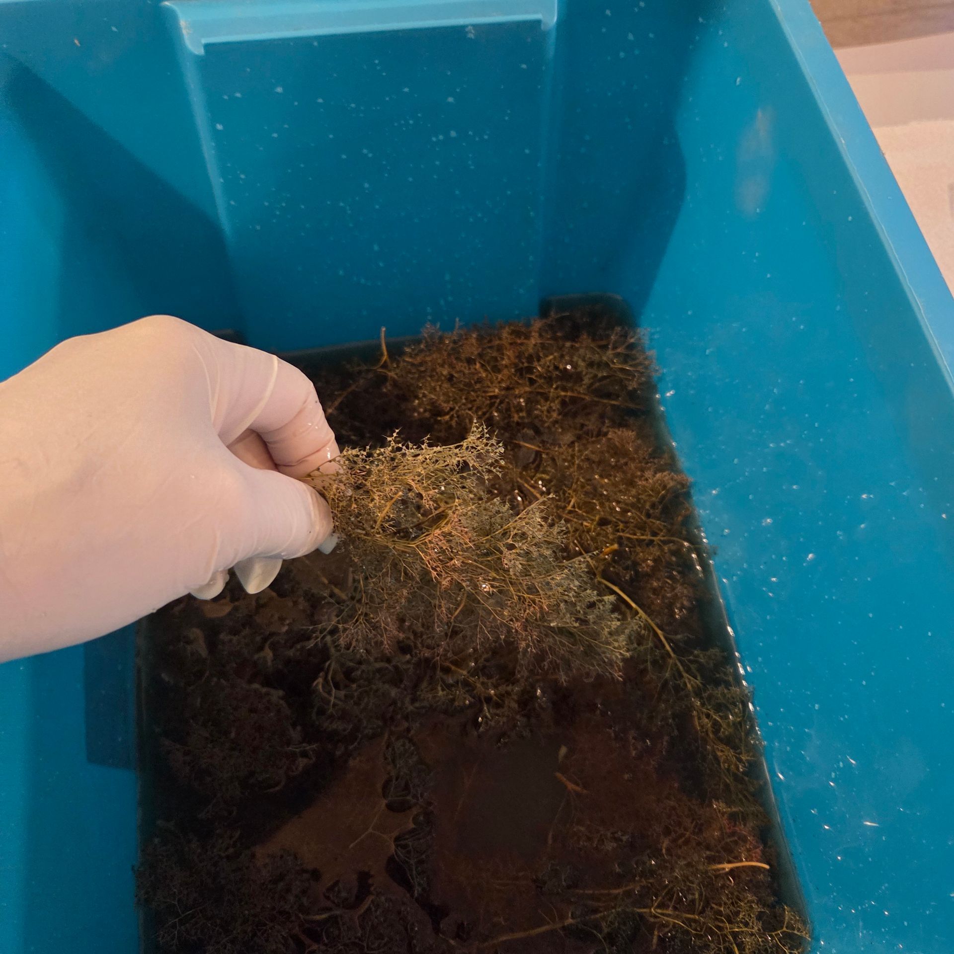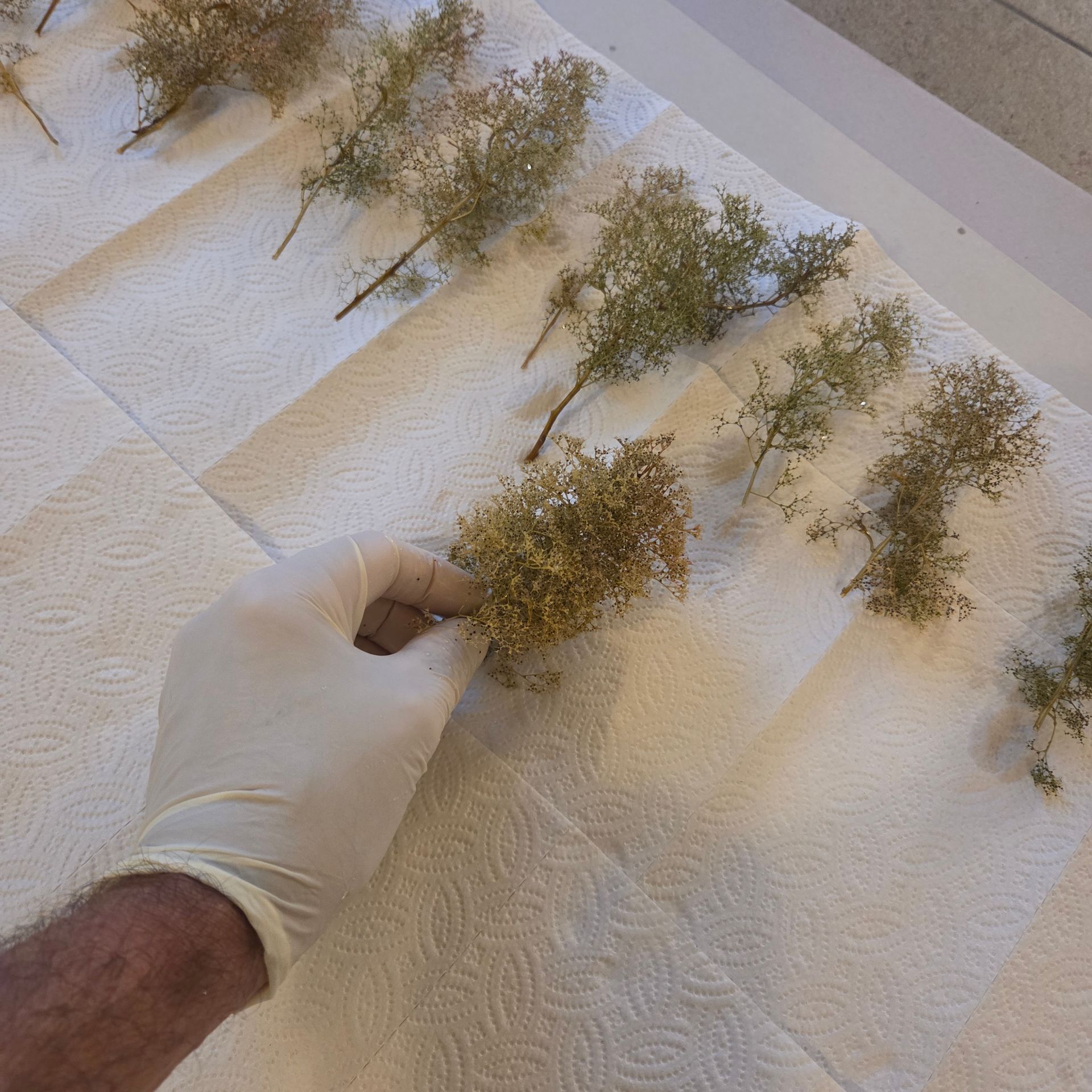 Für die Herstellung von Bäumen aus Seemoos, ist es Ratsam, das Seemoos nach dem Reinigen von feinen Blättern, ca.12 Stunden in Glycerin einzulegen. Zwei Teile Wasser ein Teil Glycerin. Nach der Einweichung, schüttle ich das Seemoss aus und lege es zum Trocknen auf Küchenpapier. Nach der Trocknung ist das sonst sehr trockne Material geschmeidig weich und lässt sich ohne zu brechen in Form biegen.