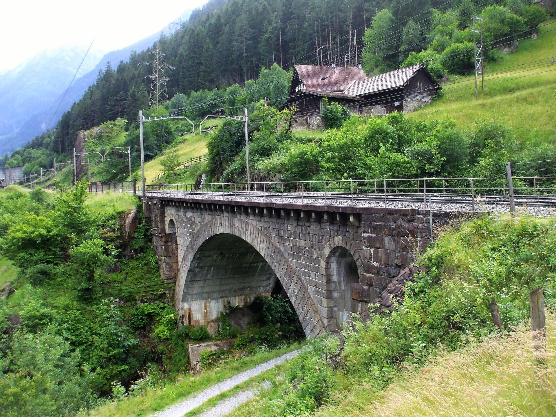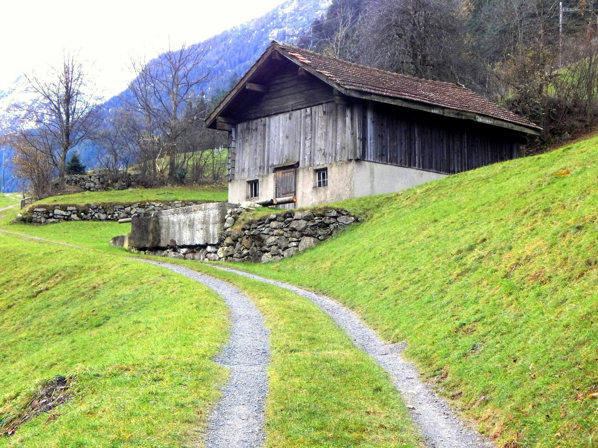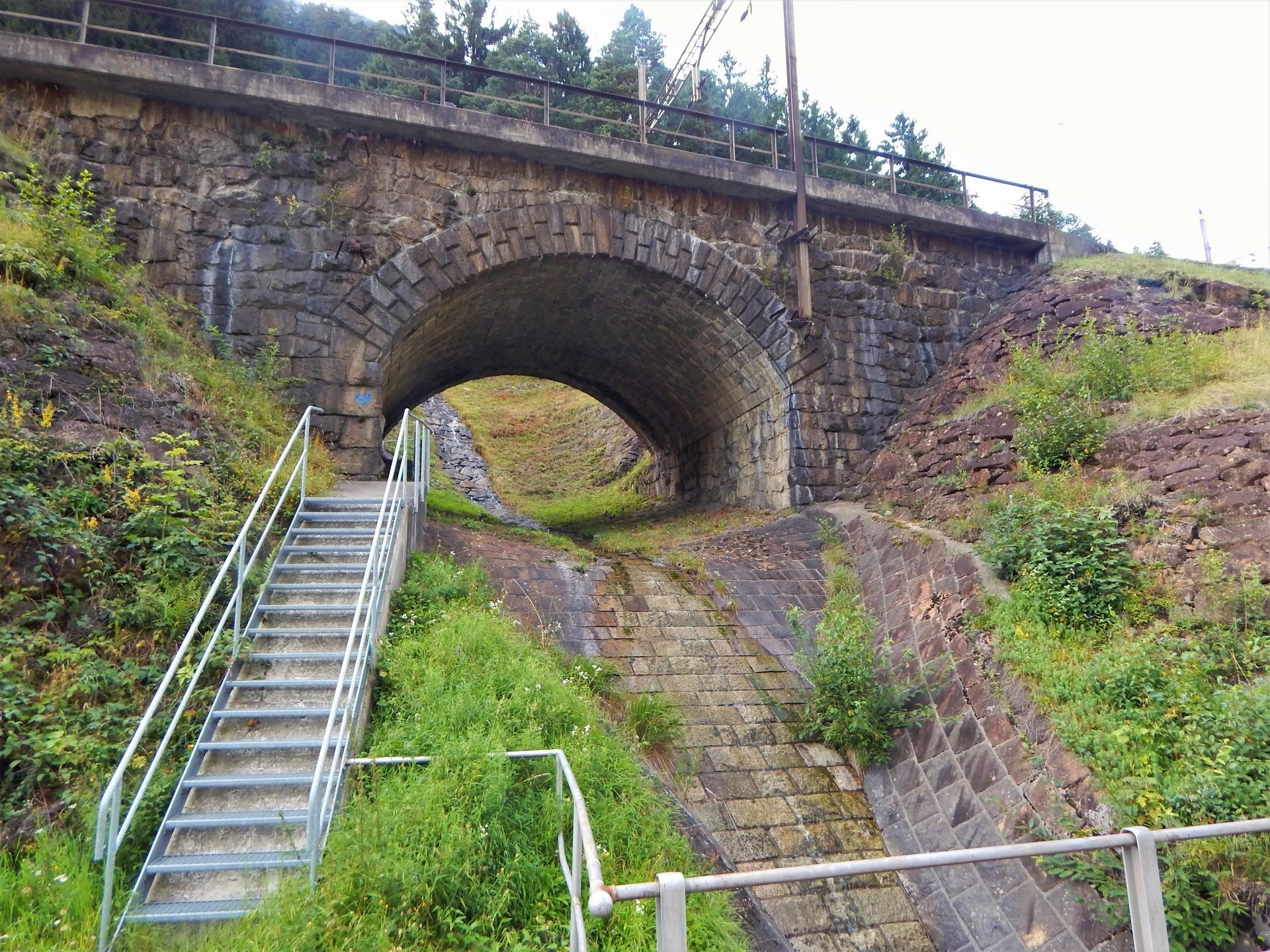 Nun gut sichtbar, die Verschmelzung der neuen Landschaftsgestaltung mit dem "alten" bereits begrünten Brückenteil mit Stall.