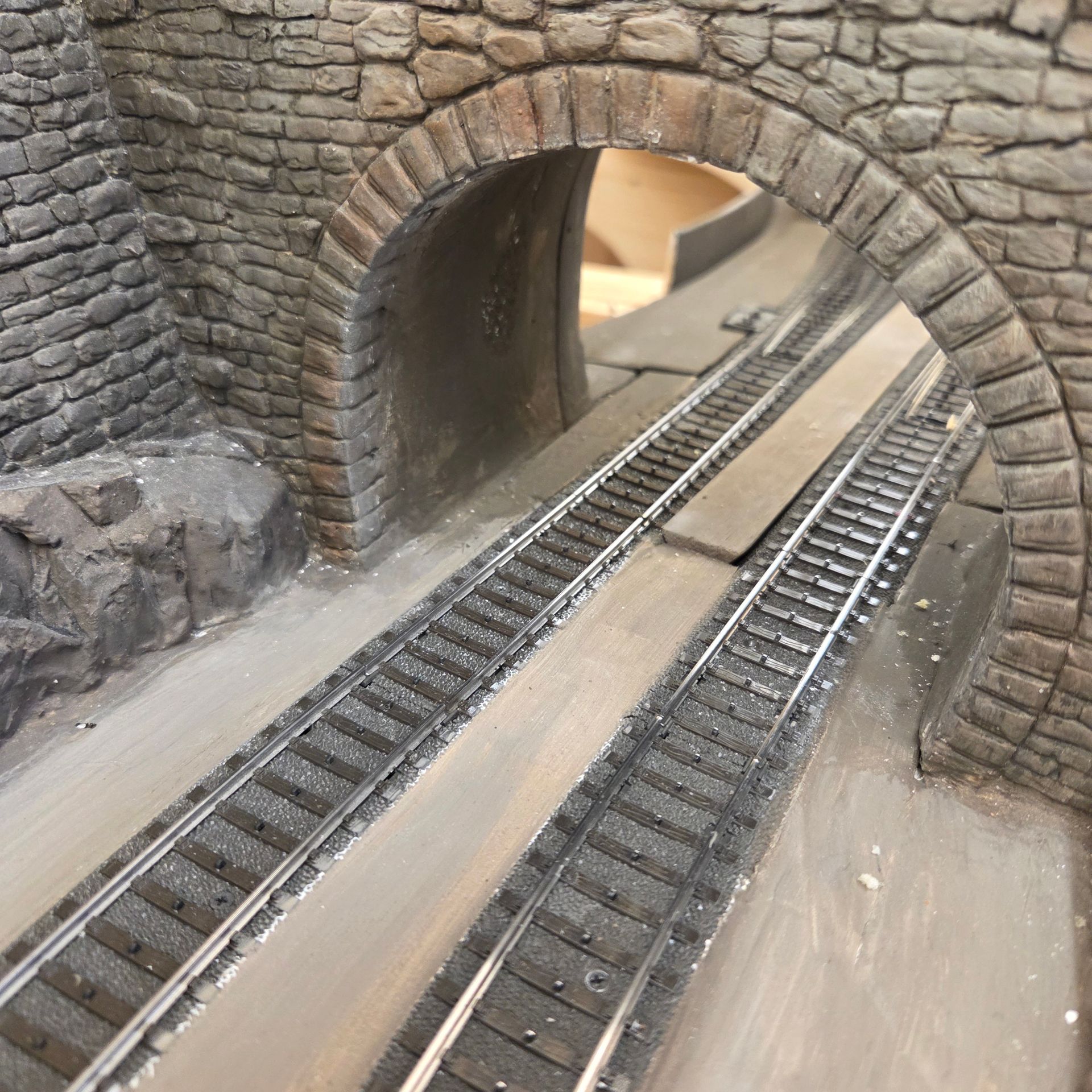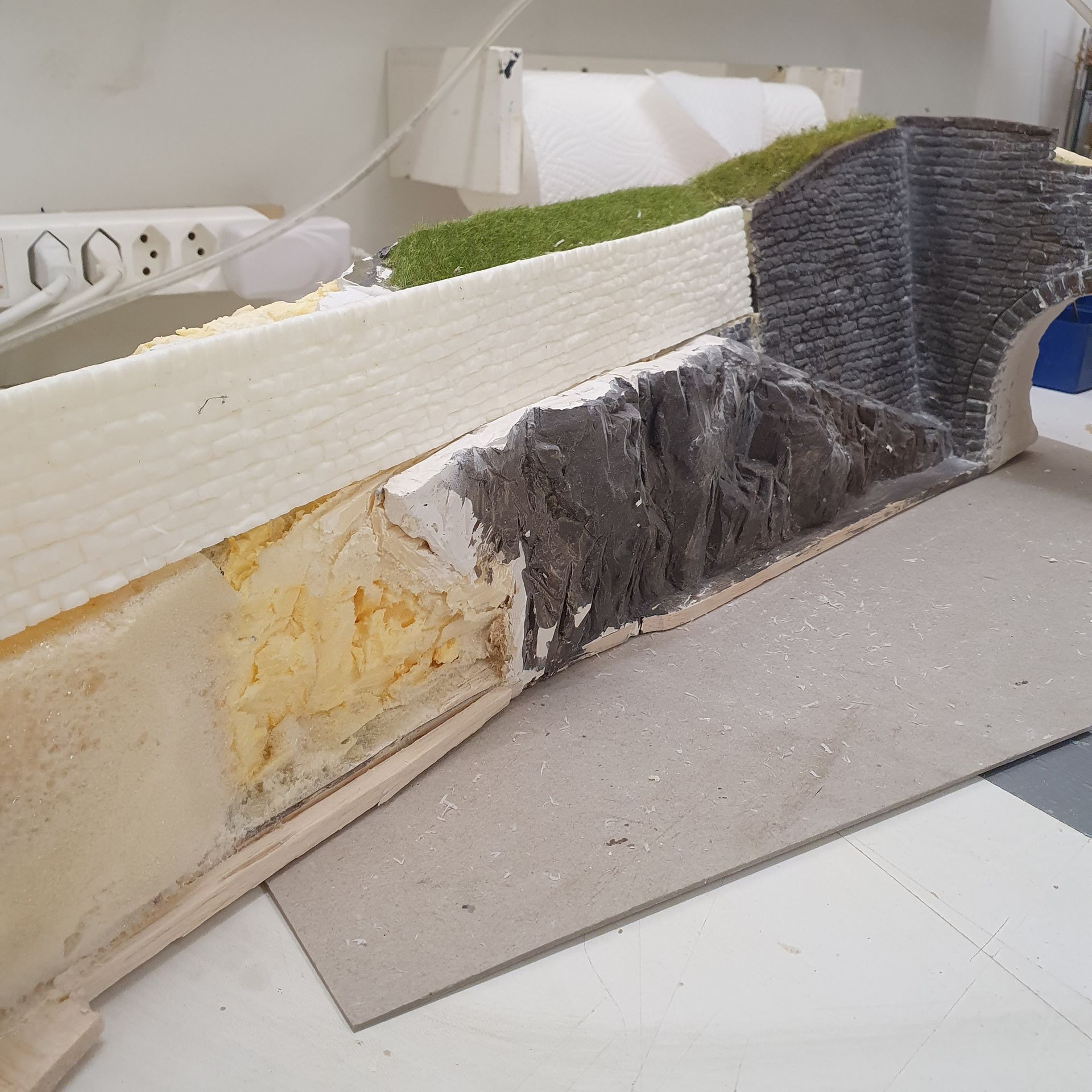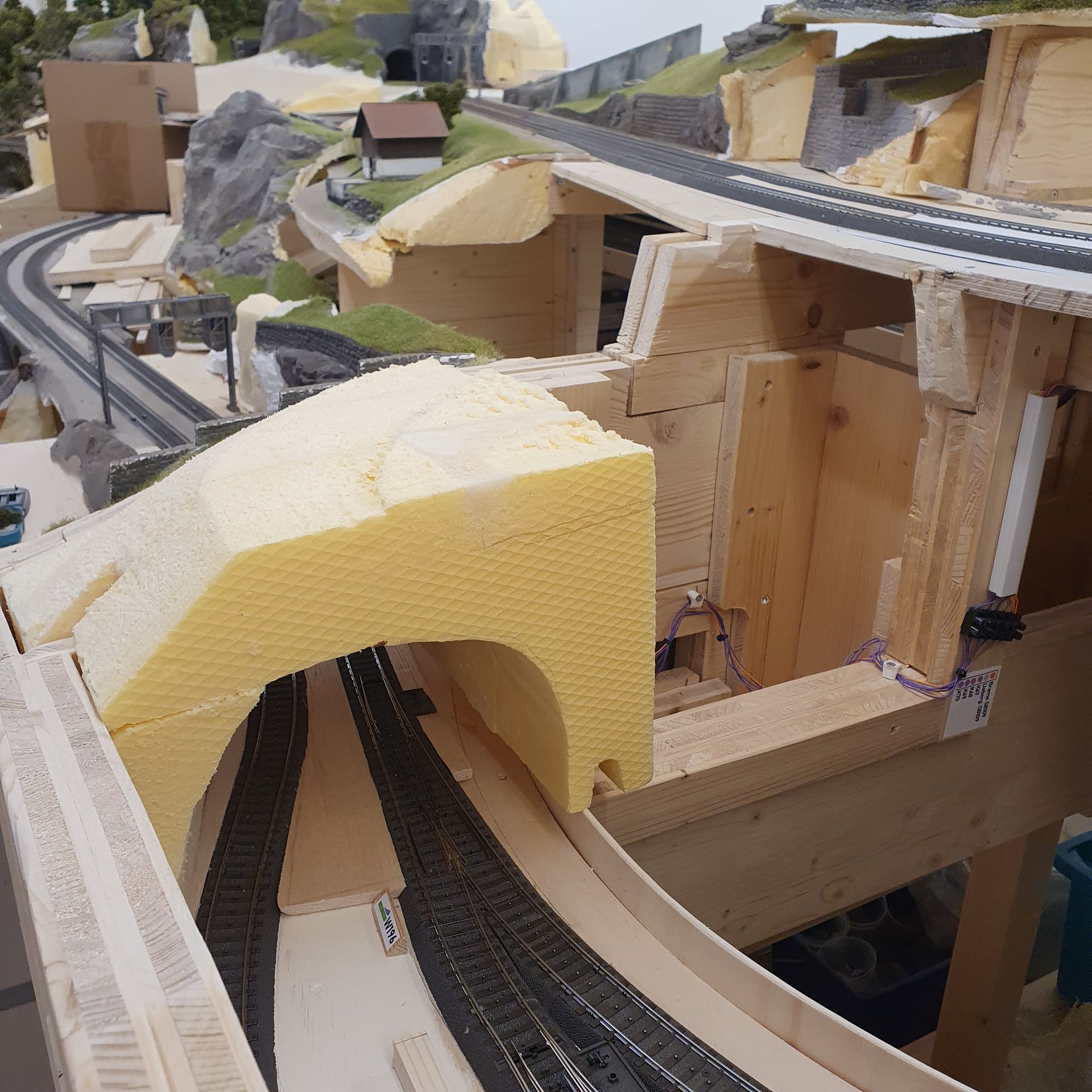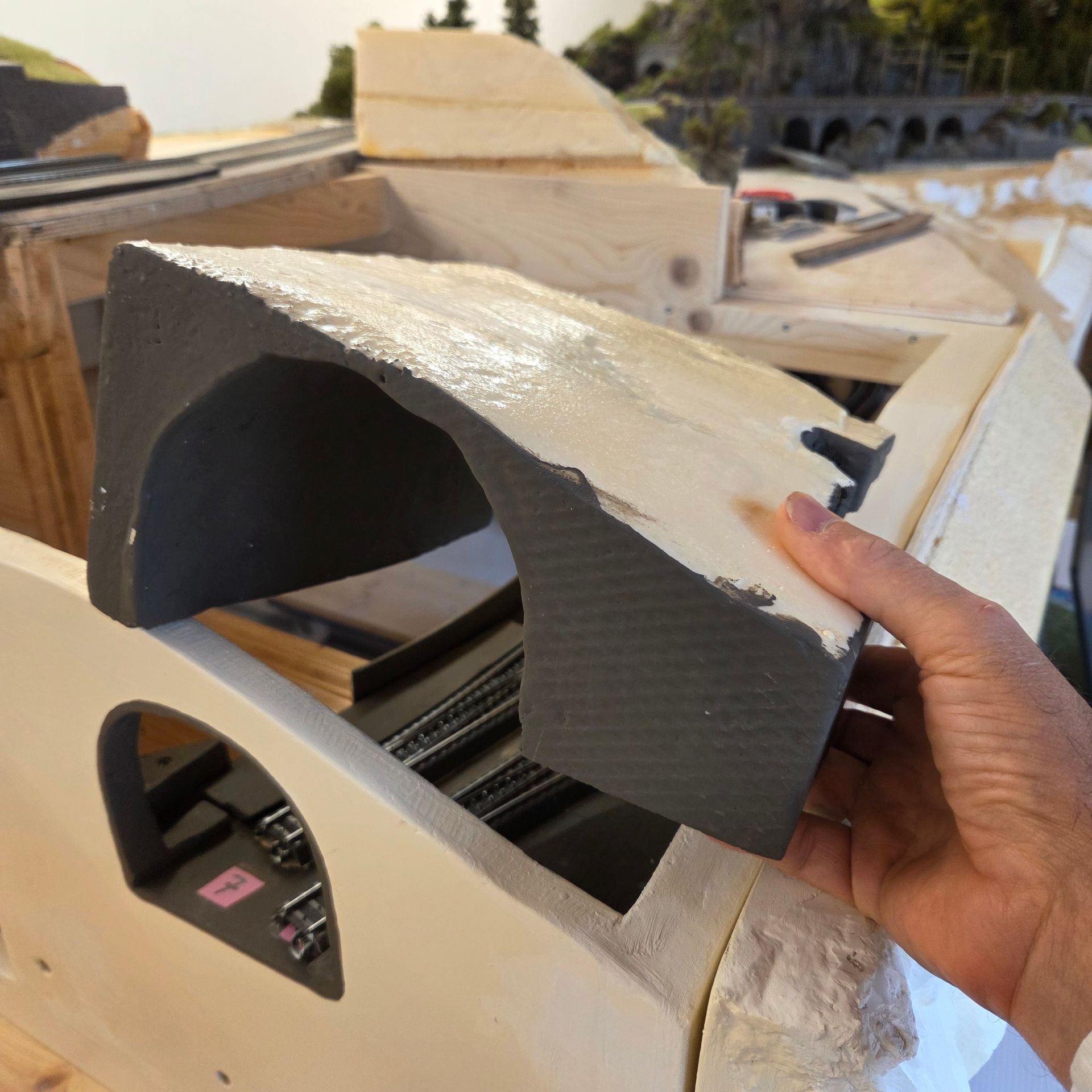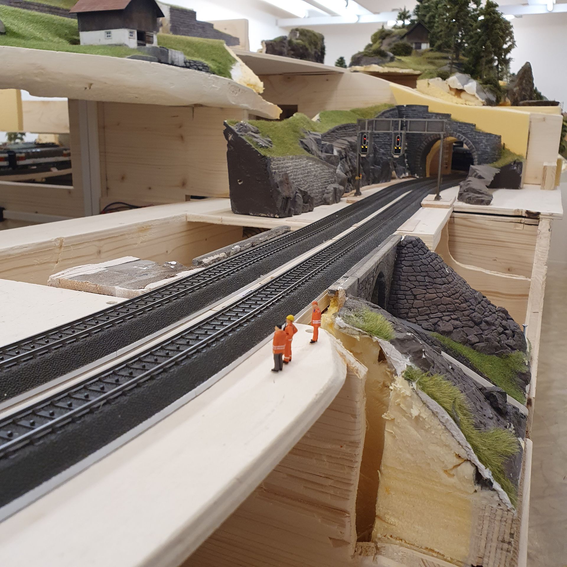 Übergang zum nächsten Modul wird angepasst und eine Tunnelröhre hergestellt, der den Einblick in den Schattenbahnhof verhindern soll.