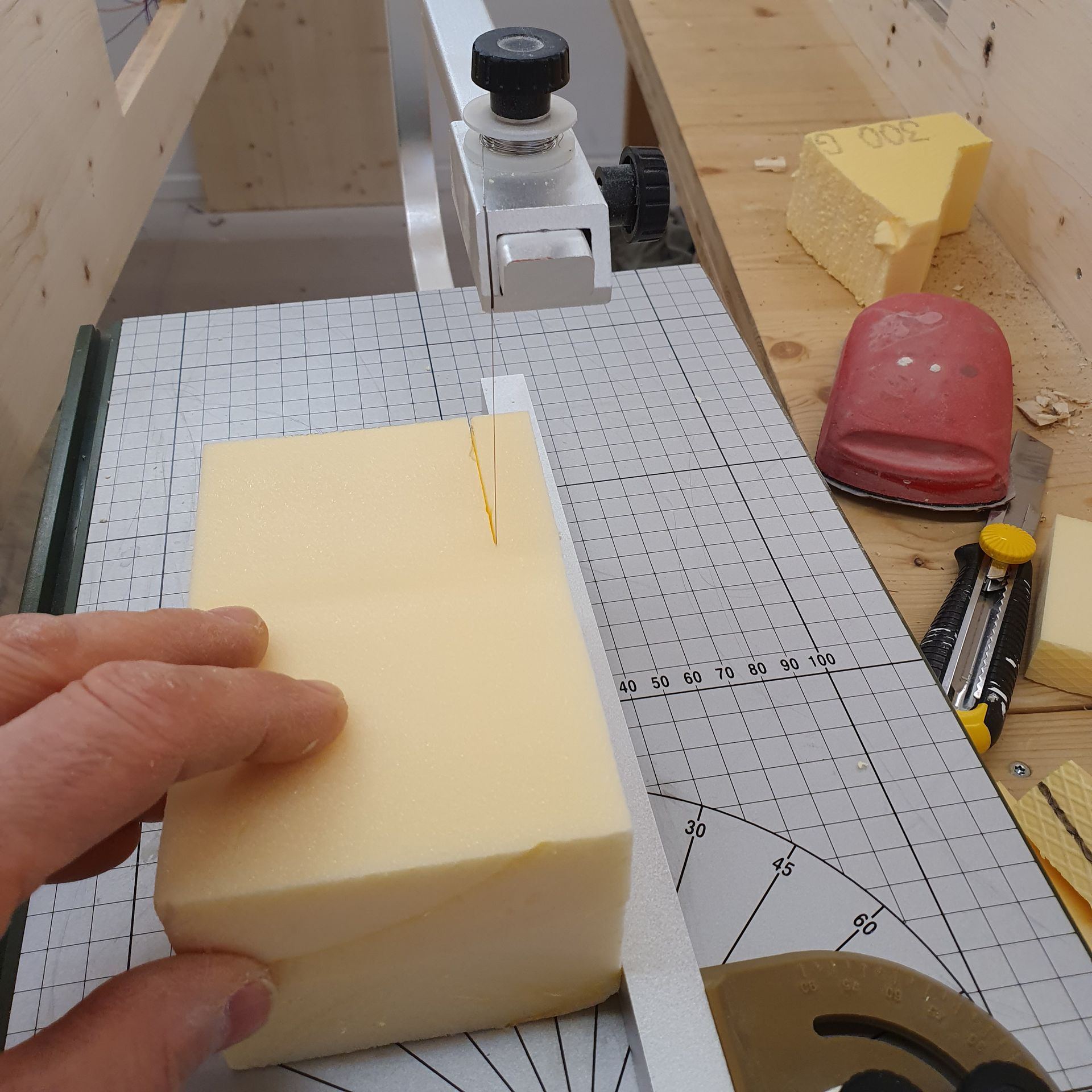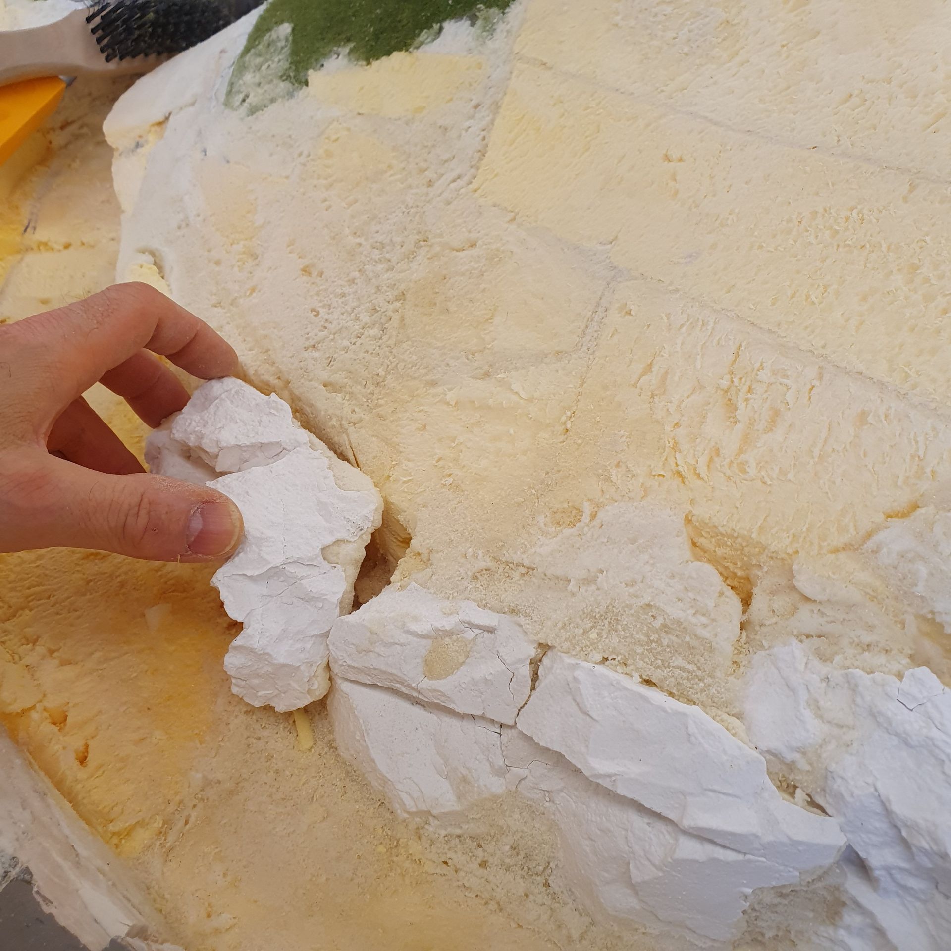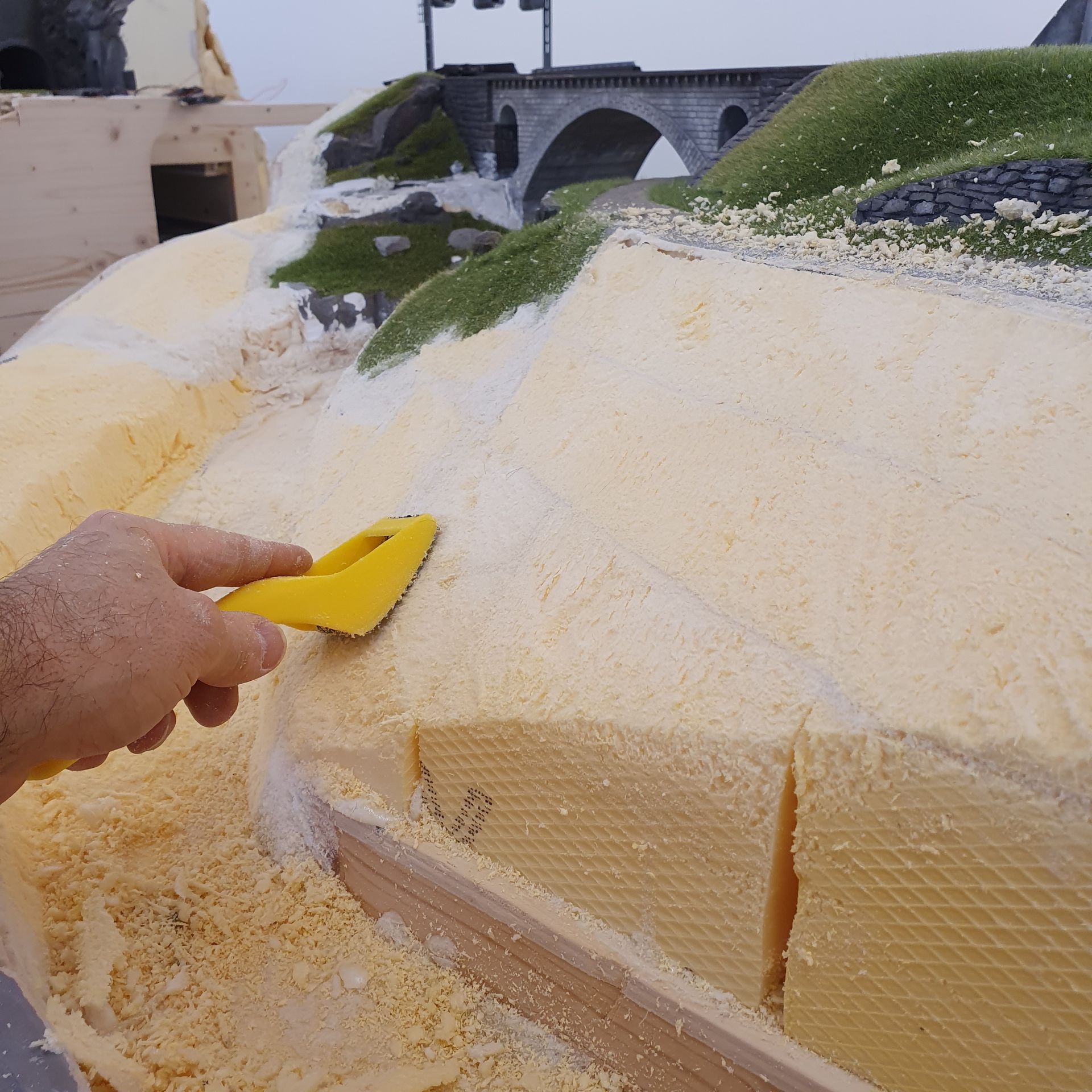 Mit der Raspel wird nun der auf gequillte und getrocknete Schaum in die korrekte Landschaftsform gebracht.