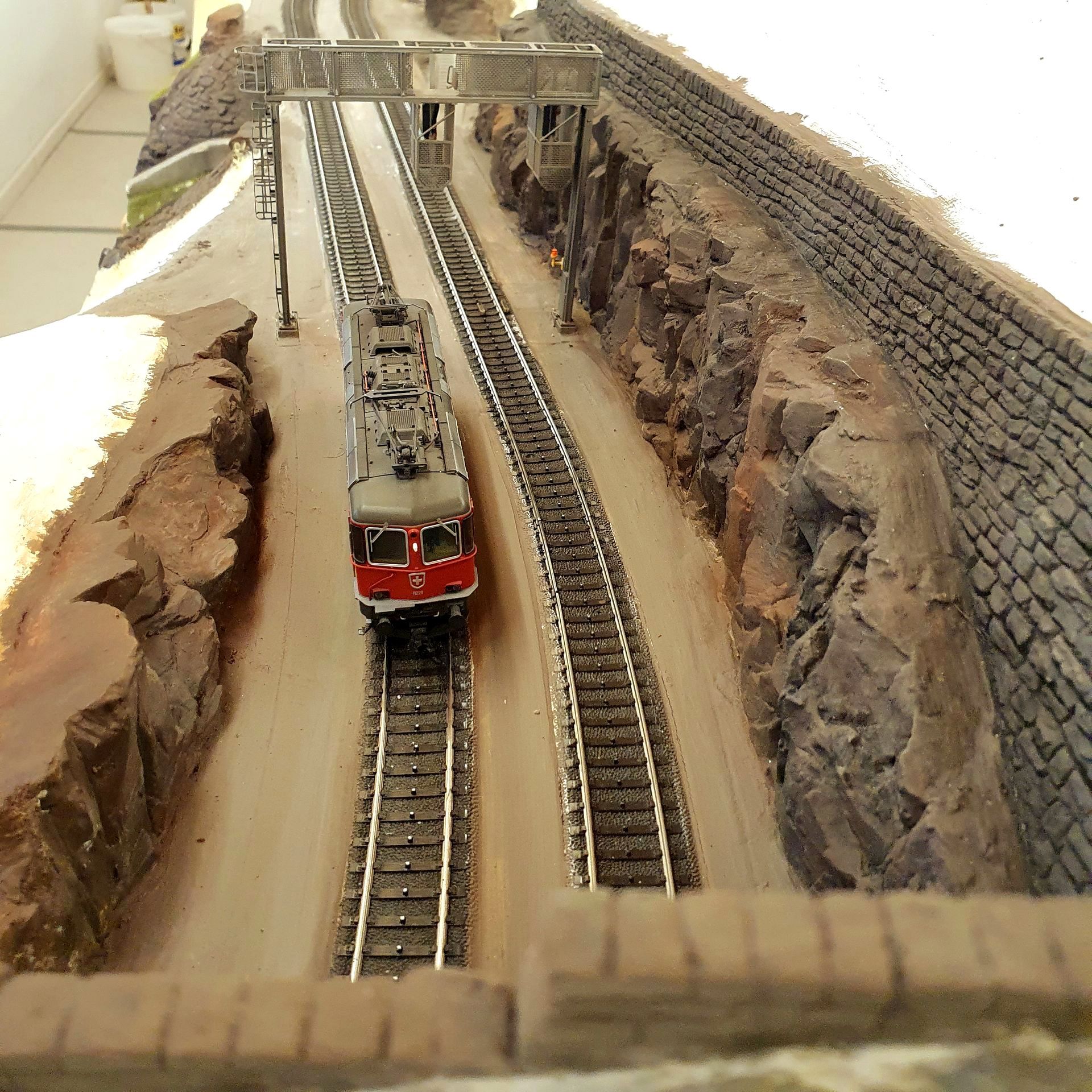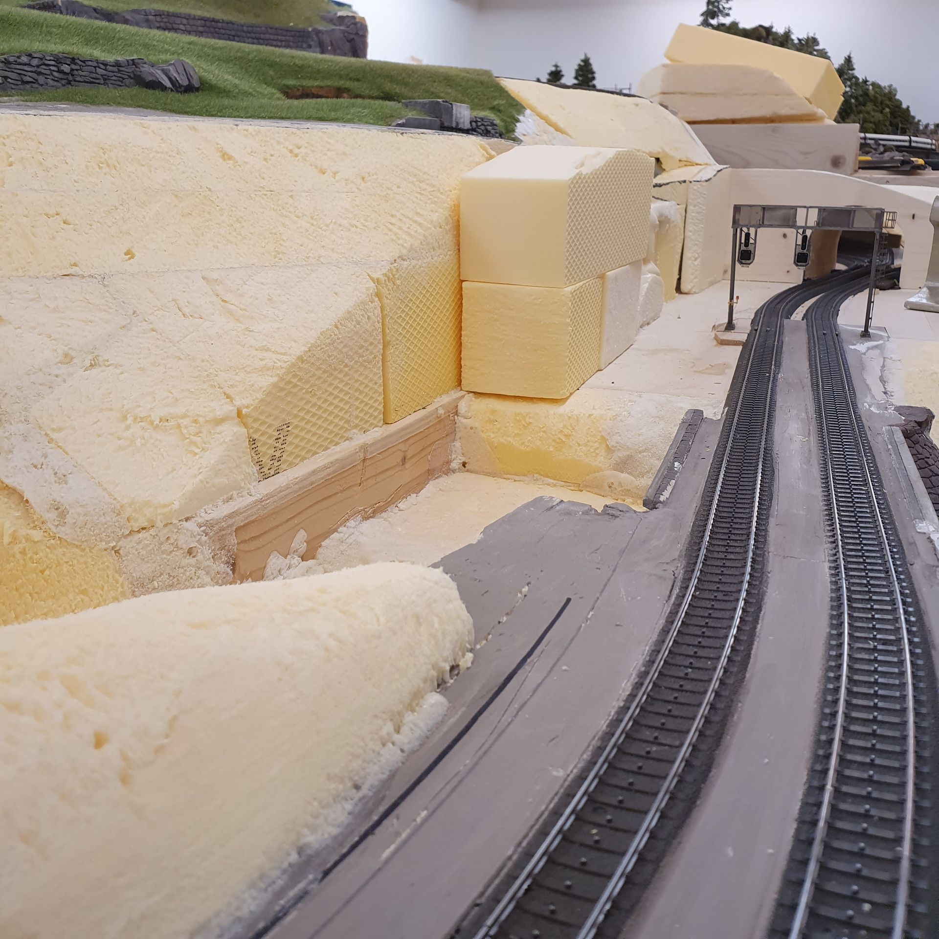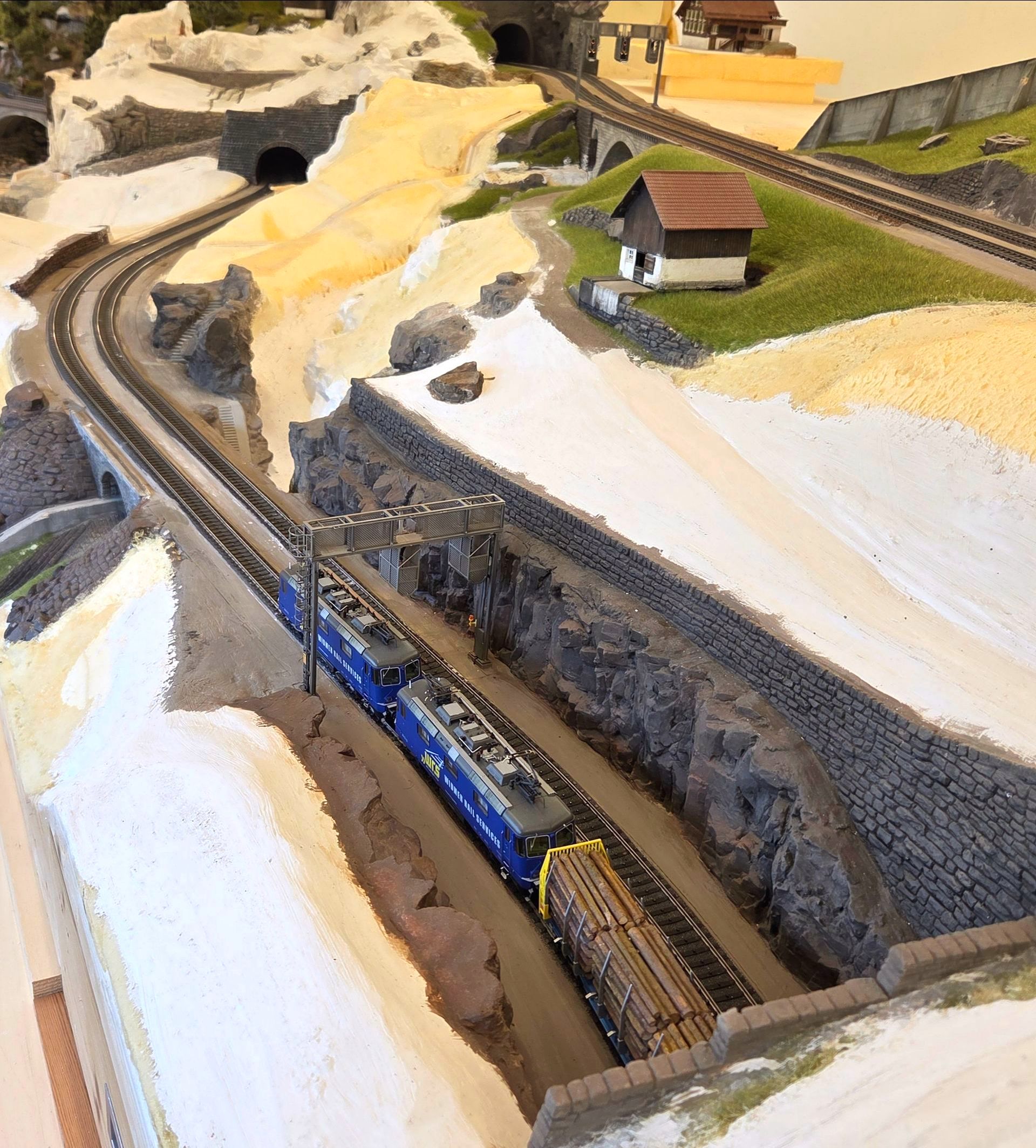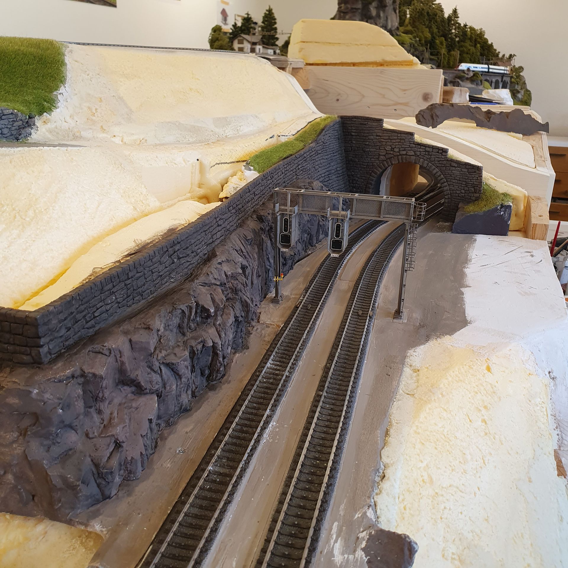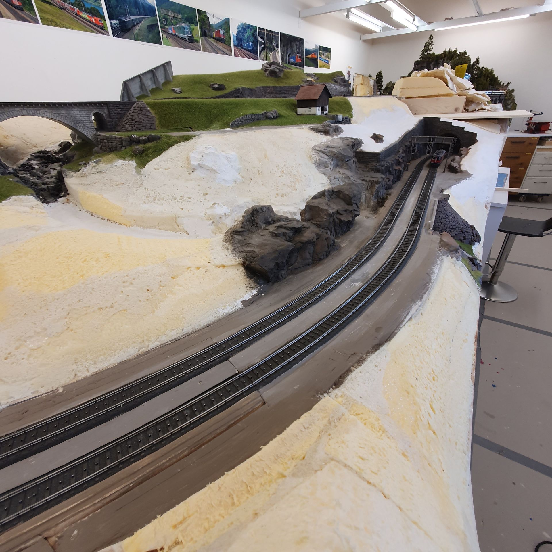 So entsteht Stück um Stück das neue Gelände von "es bitzli Gotthard" und immer mehr sichtbare Elektronik und Schattenbahnhöfe verschwinden gänzlich darunter.
