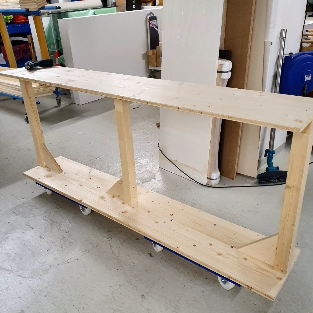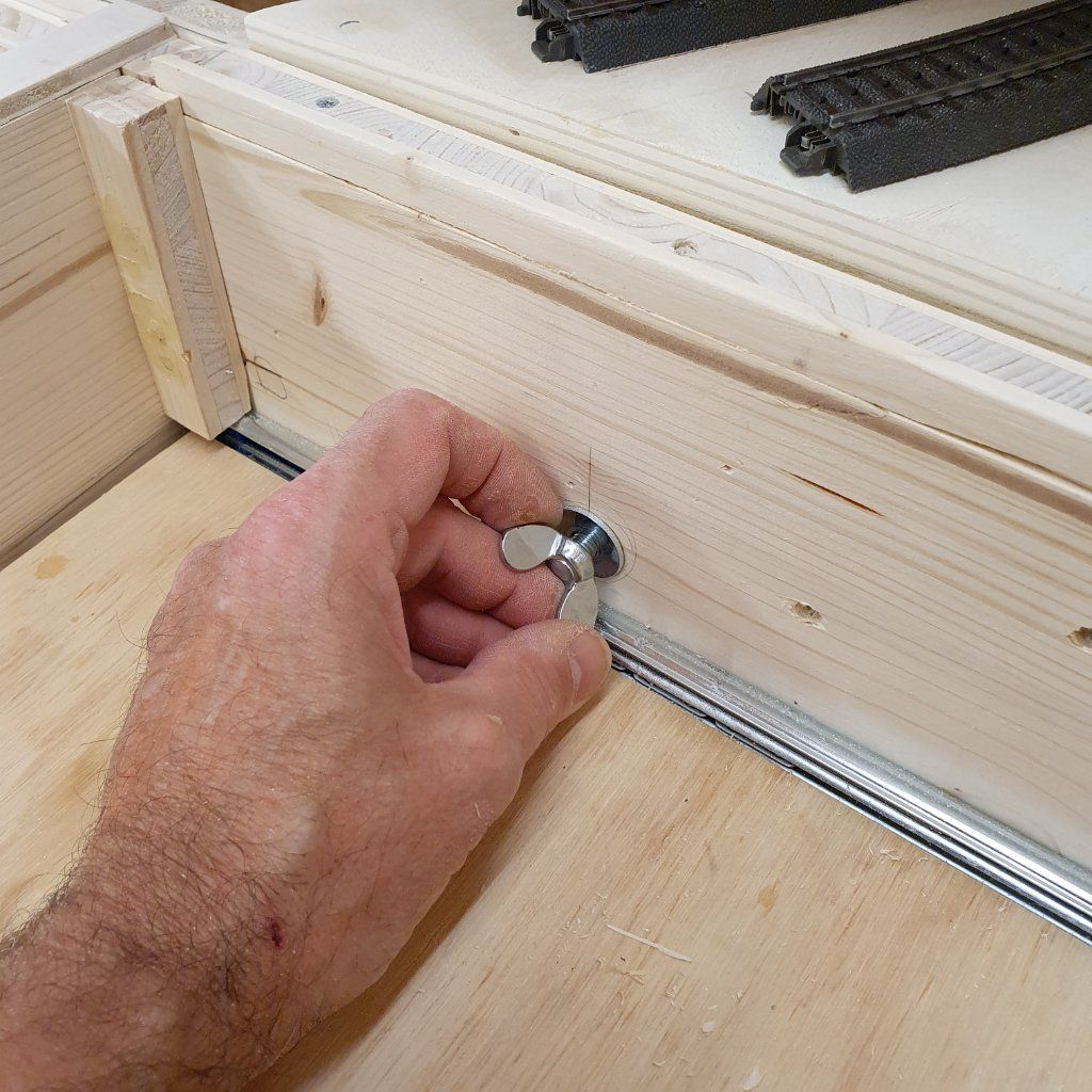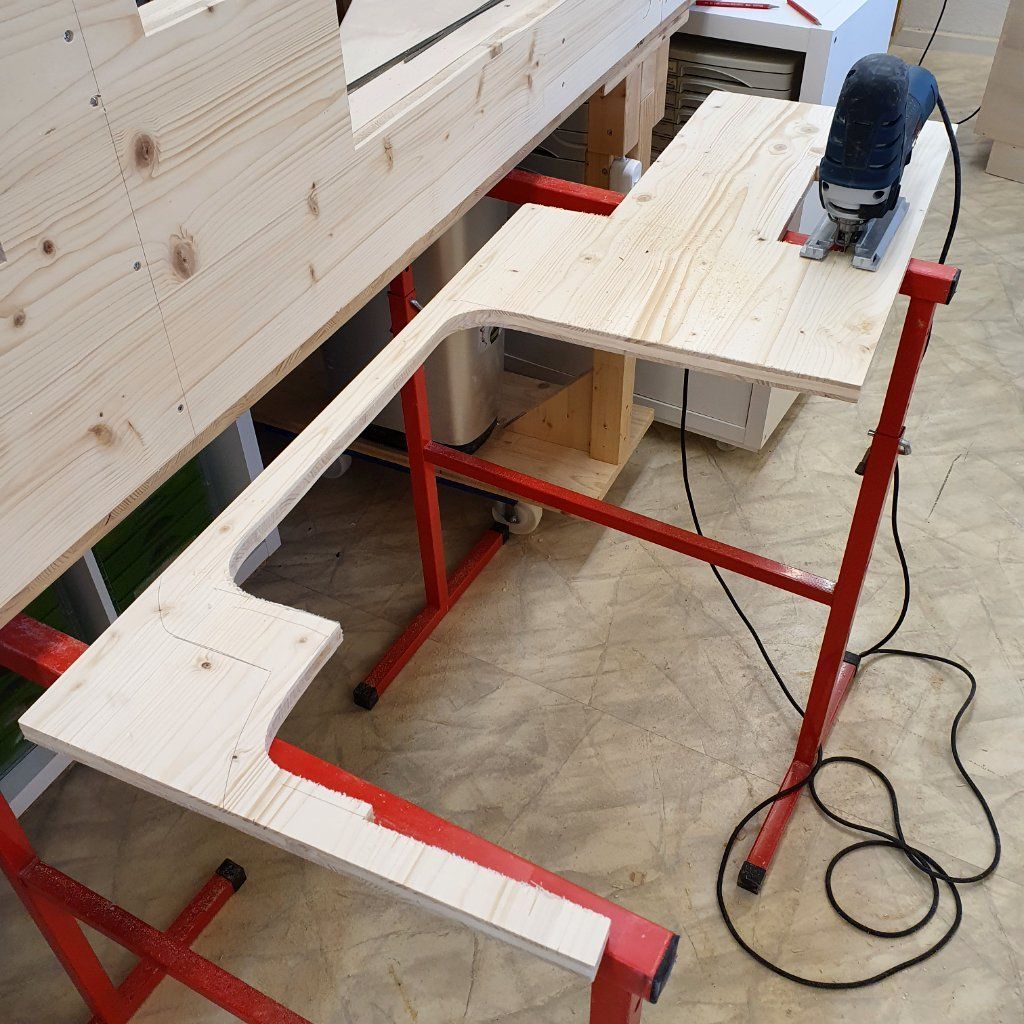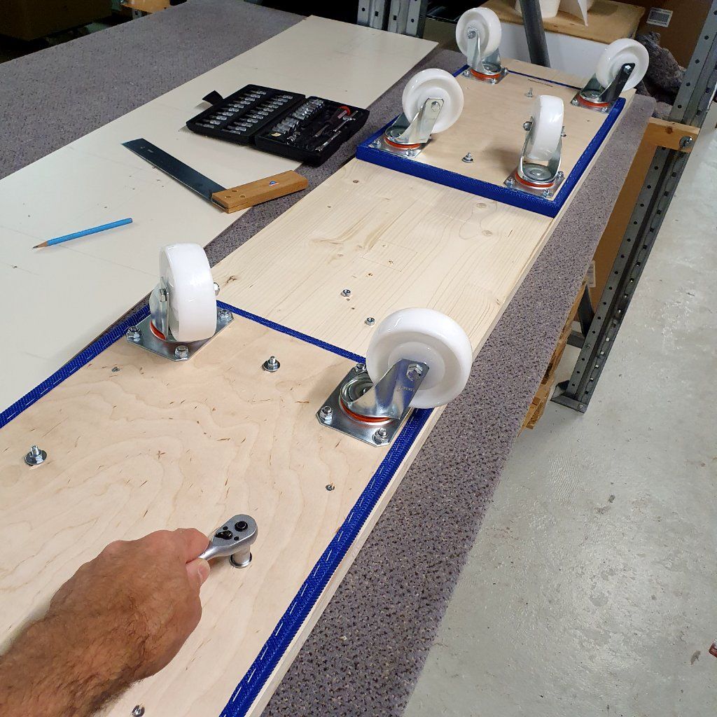 Das neue Grundgerüst besteht aus sieben, fahrbaren Holzträgern. Diese entstanden aus 60x60mm Tannenholzbalken und 19mm bzw. 27mm Dreischichtplatten, auf deren Grundplatte zwei Allzweckroller, durchgehend verschraubt wurden. Die Tragkraft eines Mapo-Rollers ist 500Kg, also mehr als genug, um auch mal währenddem Bau auf die Anlage zu steigen. Die sieben fahrbaren Holzträger wurden mit 27mm Dreischichtholzstreben miteinander verbunden, was ein sehr stabiles Grundgerüst ergab. Nach dem Zusammenbau des Grundgerüstes, wurden alle 2m, an die Stützbalken, Mehrfachsteckdosen montiert. So kann ich heute "es bitzli Gotthard" in alle Richtungen verschieben und erhalte so mehr Platz beim Bauen und Modellieren und die 8 Steckdosen um die Anlage, haben sich als äusserst praktisch erwiesen! Der Grundrahmen für den Aufbau der neuen Module, wurde ebenfalls aus 19mm Dreischichtplatten hergestellt und das Trasse für das C-Gleis, habe ich aus 10mm Pappelsperrholz zurecht gesägt. Bilder zu dieser Bauphase sind in den Impressionen vom Umbau zu sehen.