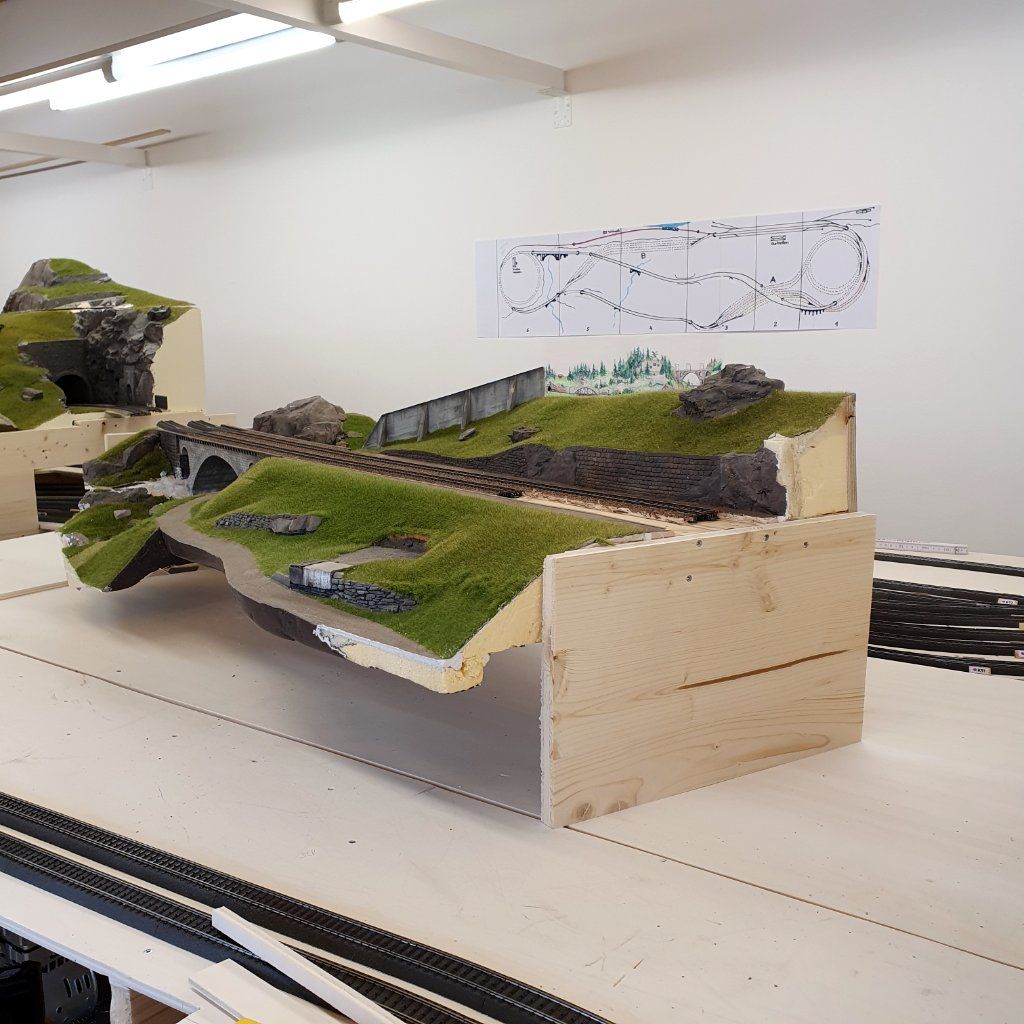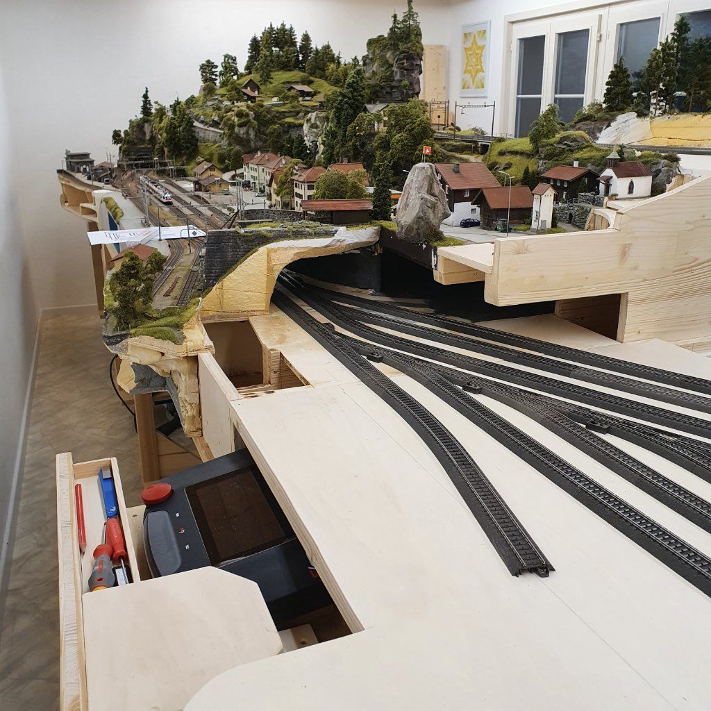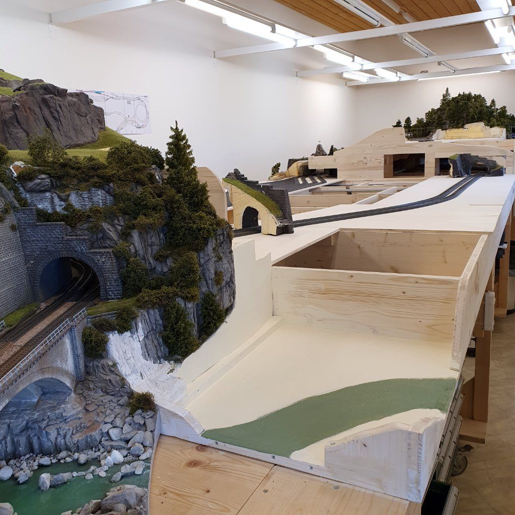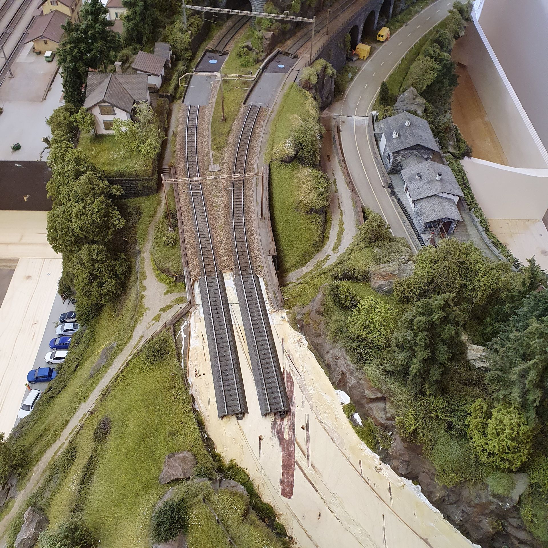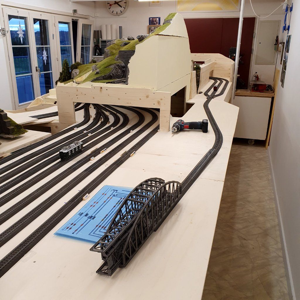 Bin im Dezember 2020 umgezogen und habe nun einen neuen Raum für "es bitzli Gotthard". Dieser schöne Raum, mit Sicht ins Grüne, ist 12m x 3.30 groß. Die alte Anlage mit ihrer U-Form 4,5m x 5m passte da nicht mehr rein und musste deshalb auf 2m x 10m umgebaut werden. Dies natürlich mit einem Teil der bereits vollendeten Module, an denen jedoch einige aufwendige Anpassungen nötig waren. "Es bitzli Gotthard" lässt sich nun ringsum betrachten, was doch eine wesentliche Verbesserung darstellt.