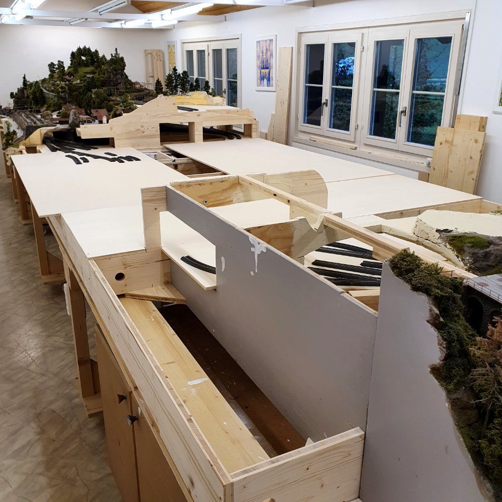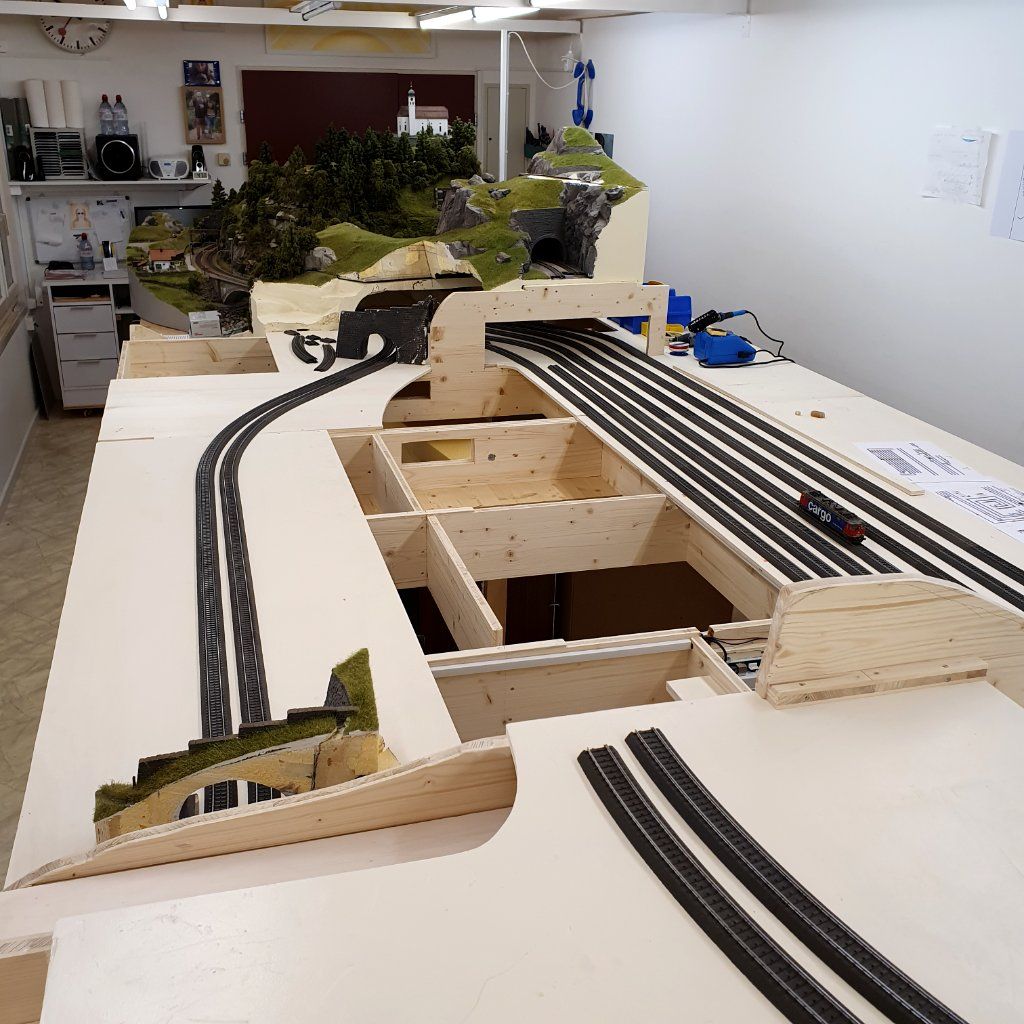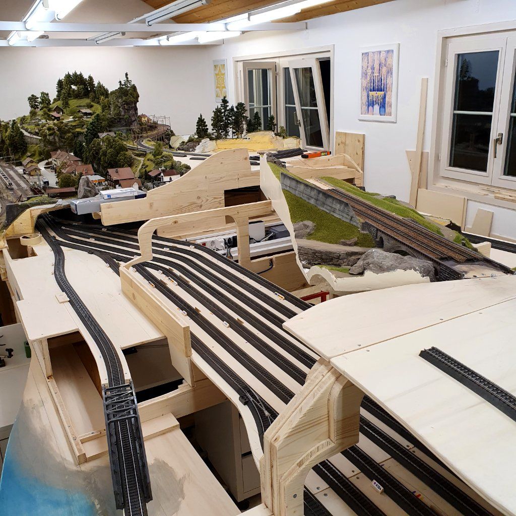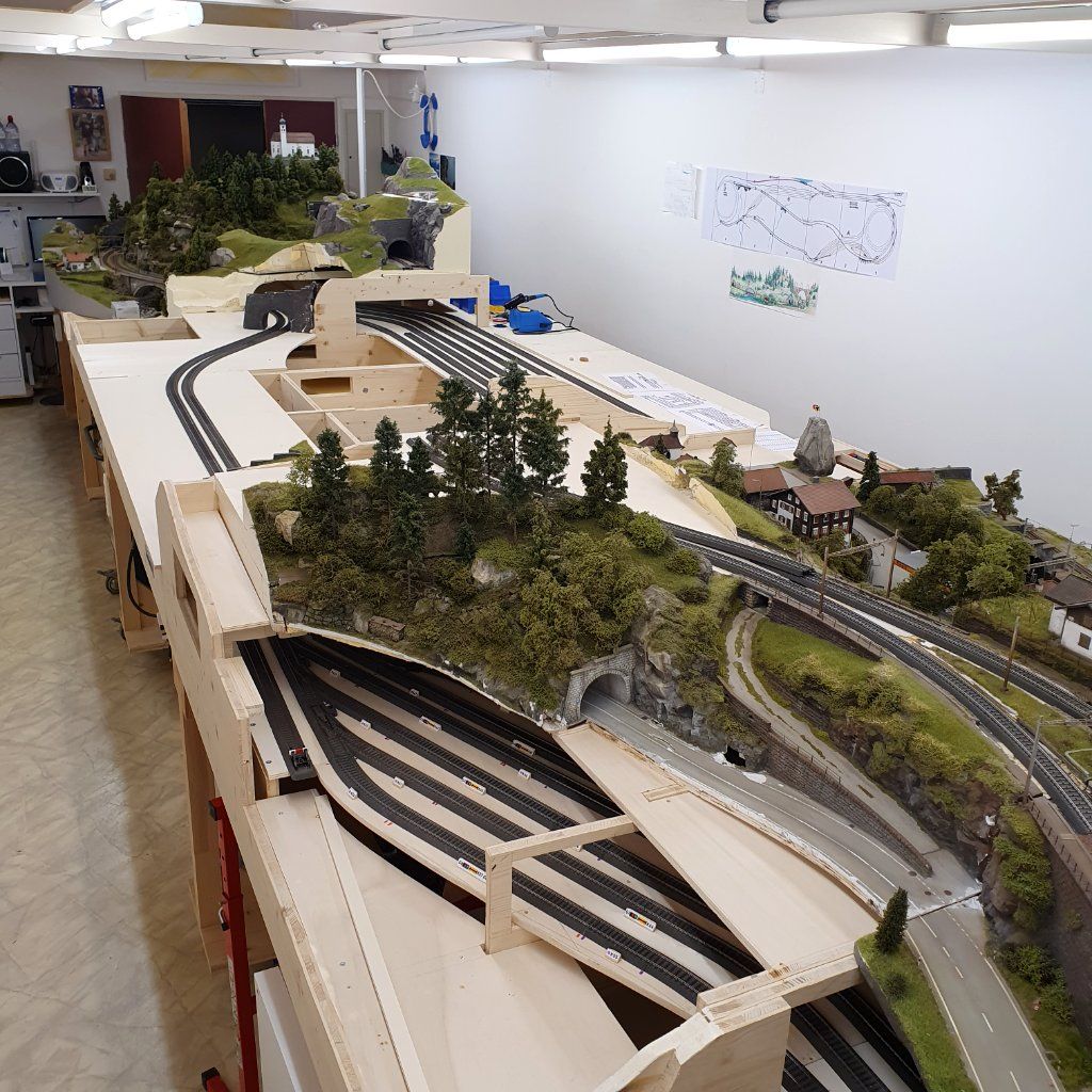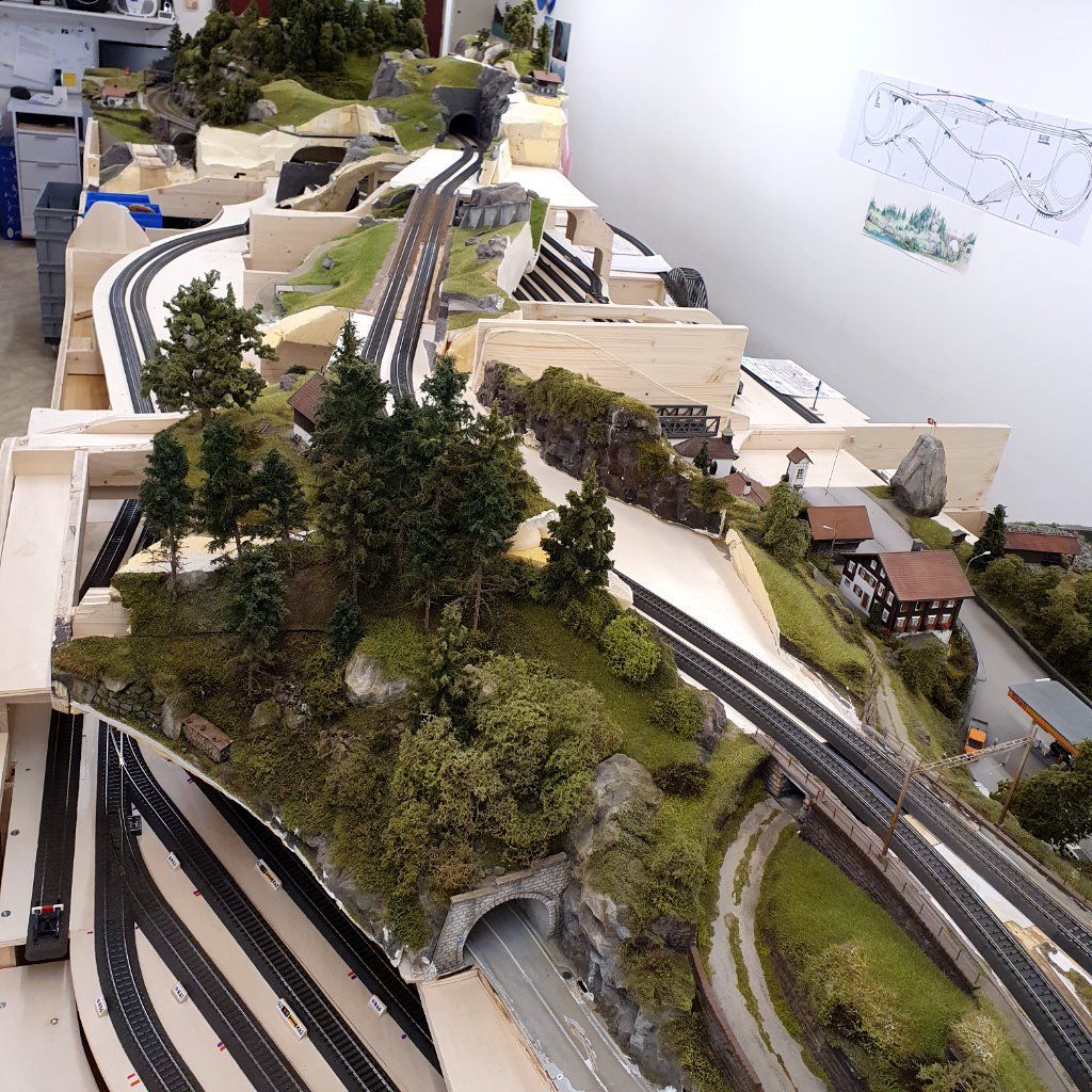 Bin im Dezember 2020 umgezogen und habe nun einen neuen Raum für "es bitzli Gotthard". Dieser schöne Raum, mit Sicht ins Grüne, ist 12m x 3.30 groß. Die alte Anlage mit ihrer U-Form 4,5m x 5m passte da nicht mehr rein und musste deshalb auf 2m x 10m umgebaut werden. Dies natürlich mit einem Teil der bereits vollendeten Module, an denen jedoch einige aufwendige Anpassungen nötig waren. "Es bitzli Gotthard" lässt sich nun ringsum betrachten, was doch eine wesentliche Verbesserung darstellt.