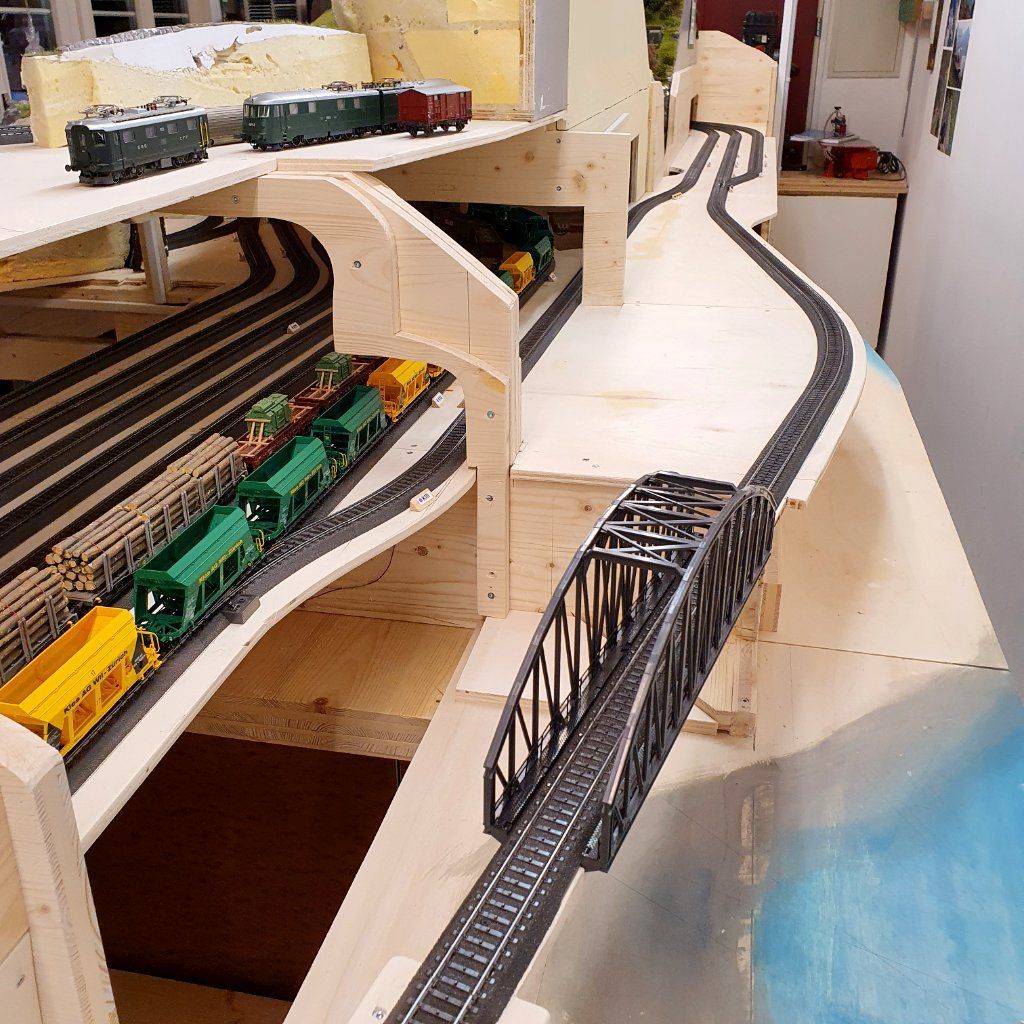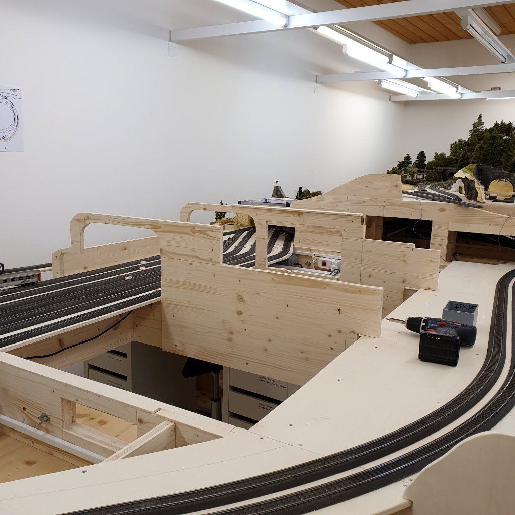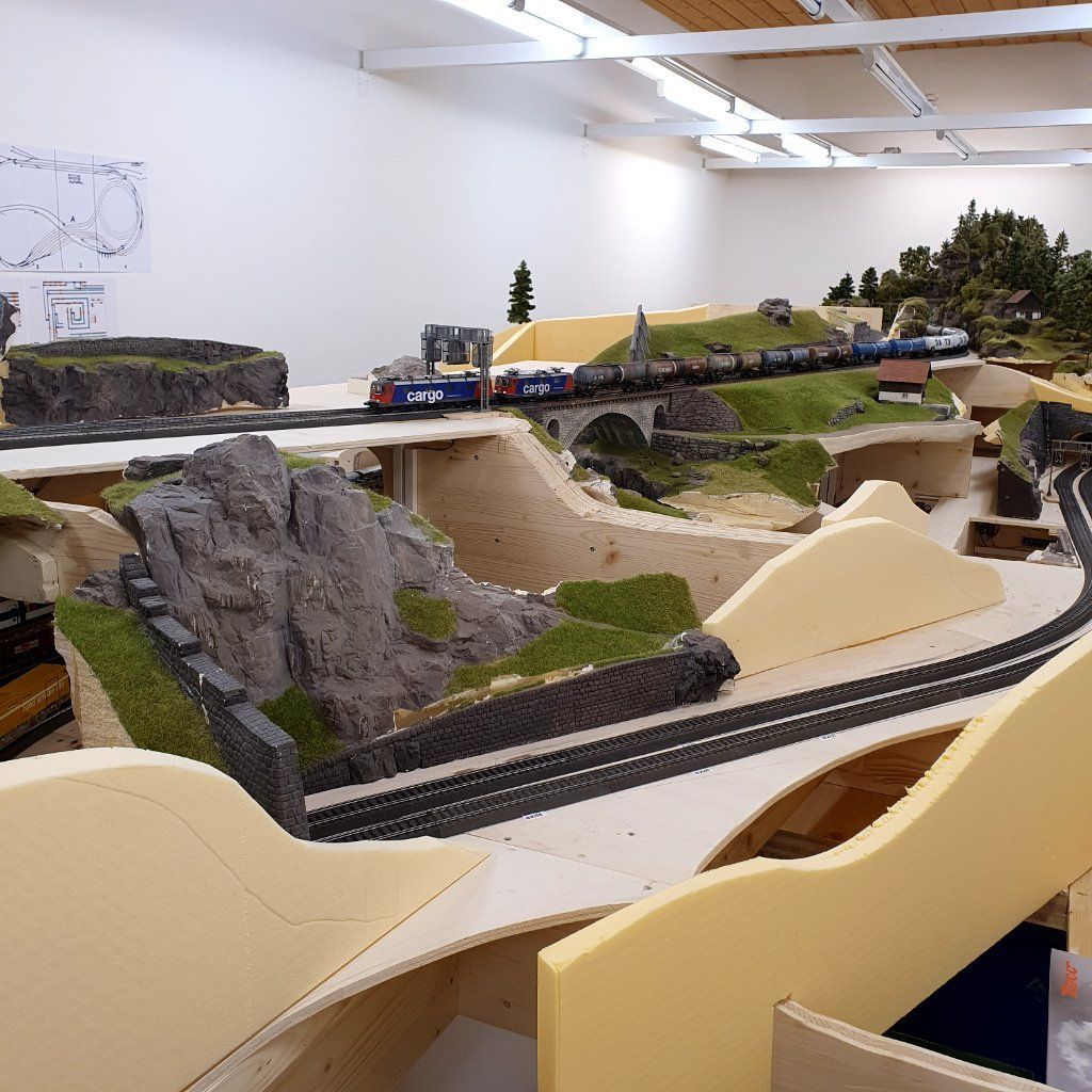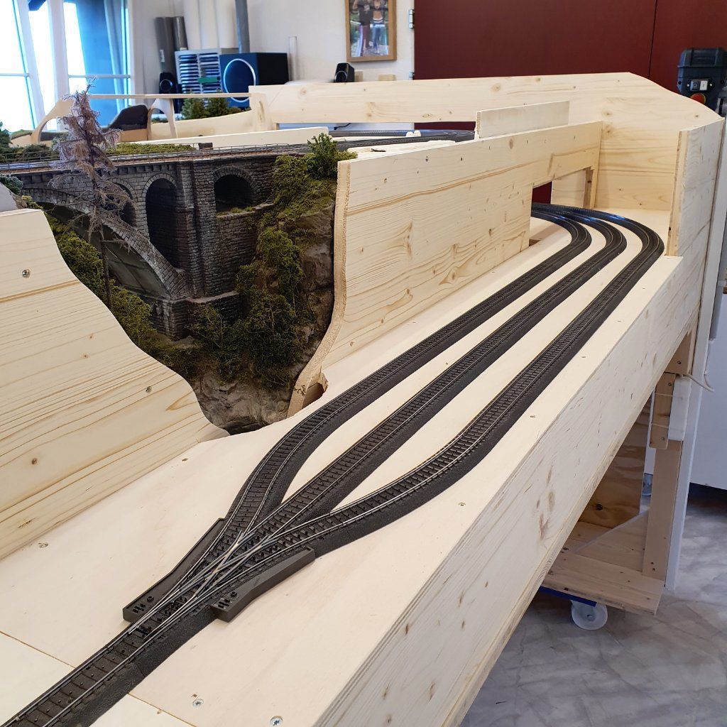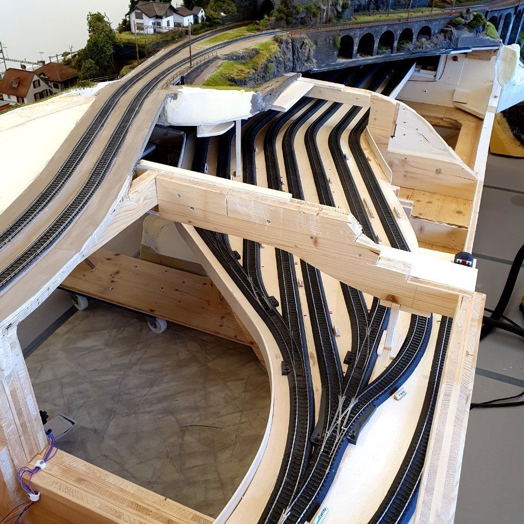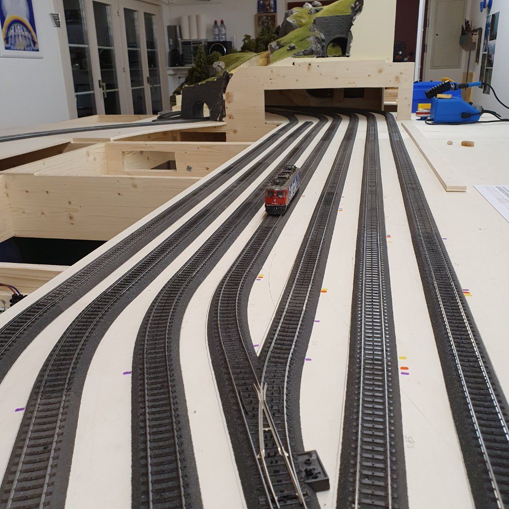 Bin im Dezember 2020 umgezogen und habe nun einen neuen Raum für "es bitzli Gotthard". Dieser schöne Raum, mit Sicht ins Grüne, ist 12m x 3.30 groß. Die alte Anlage mit ihrer U-Form 4,5m x 5m passte da nicht mehr rein und musste deshalb auf 2m x 10m umgebaut werden. Dies natürlich mit einem Teil der bereits vollendeten Module, an denen jedoch einige aufwendige Anpassungen nötig waren. "Es bitzli Gotthard" lässt sich nun ringsum betrachten, was doch eine wesentliche Verbesserung darstellt.