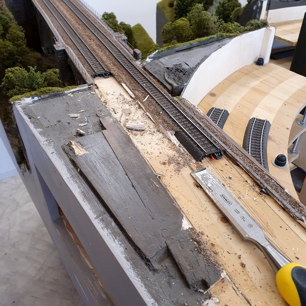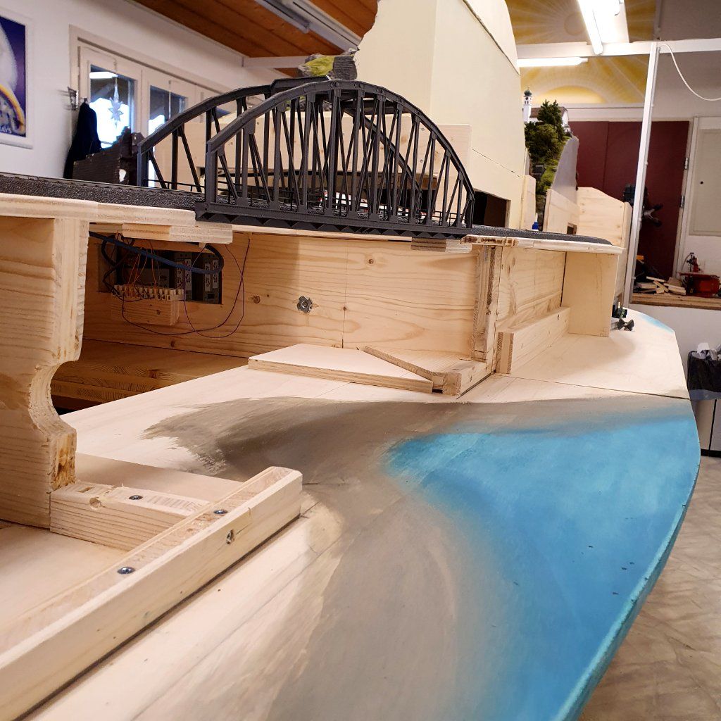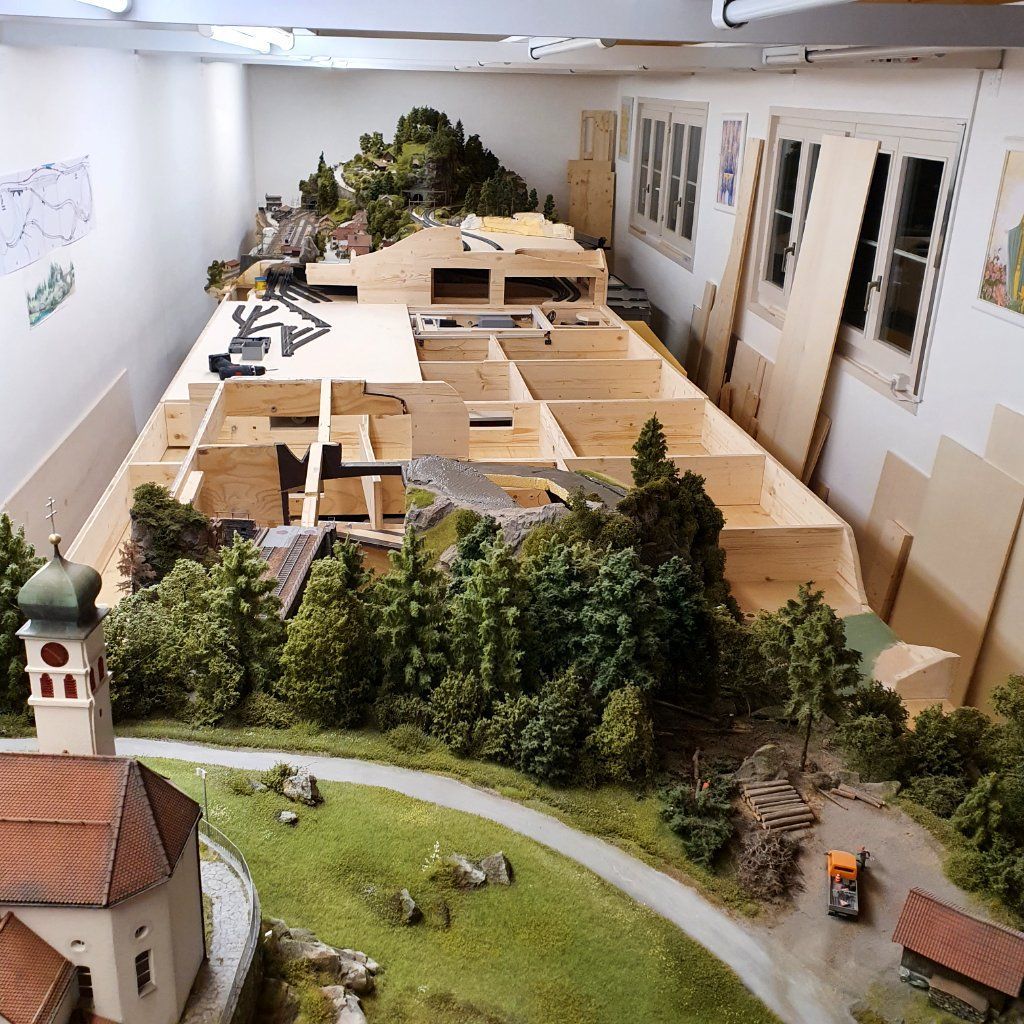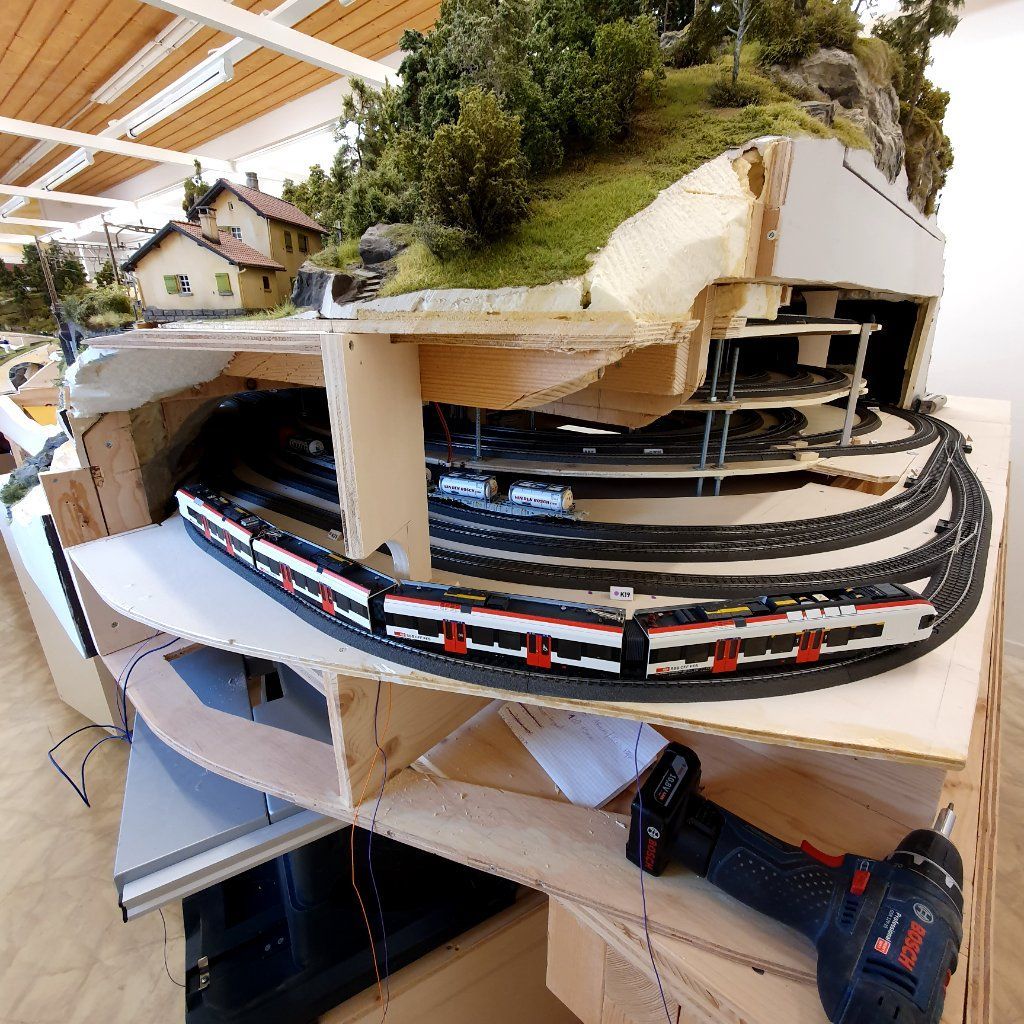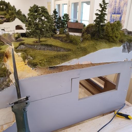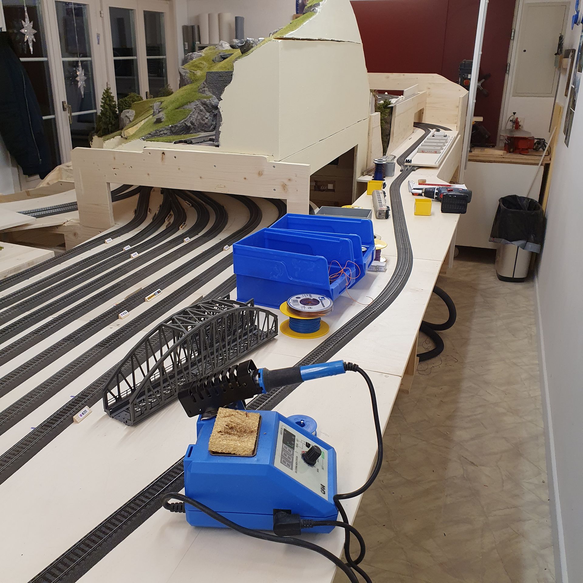 Bin im Dezember 2020 umgezogen und habe nun einen neuen Raum für "es bitzli Gotthard". Dieser schöne Raum, mit Sicht ins Grüne, ist 12m x 3.30 groß. Die alte Anlage mit ihrer U-Form 4,5m x 5m passte da nicht mehr rein und musste deshalb auf 2m x 10m umgebaut werden. Dies natürlich mit einem Teil der bereits vollendeten Module, an denen jedoch einige aufwendige Anpassungen nötig waren. "Es bitzli Gotthard" lässt sich nun ringsum betrachten, was doch eine wesentliche Verbesserung darstellt.